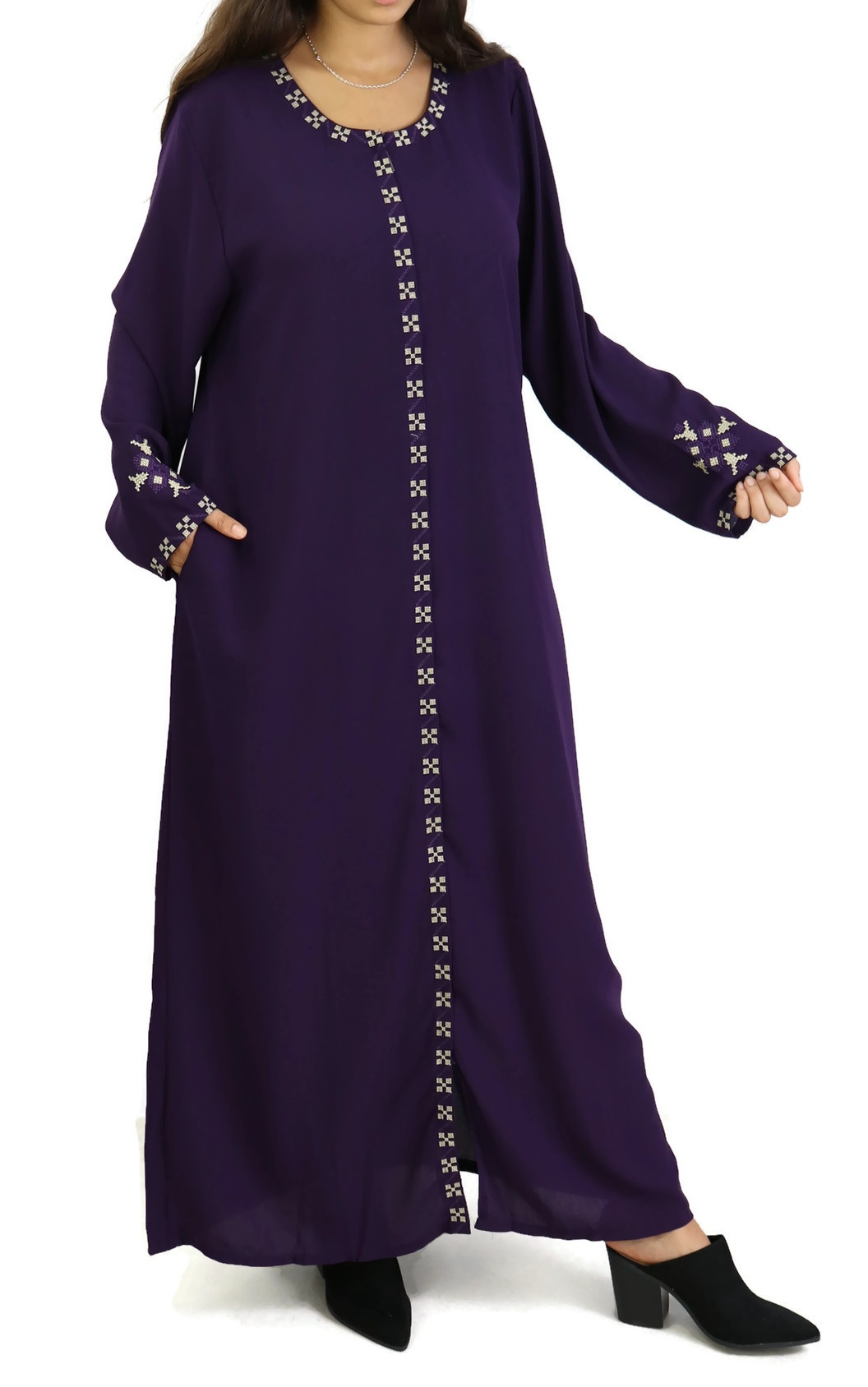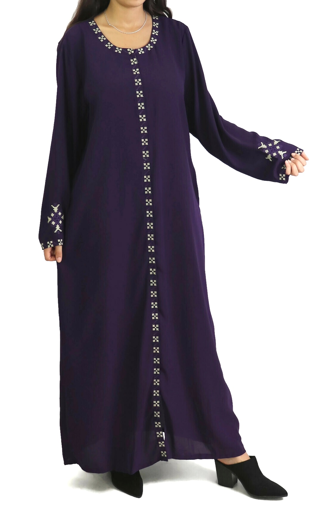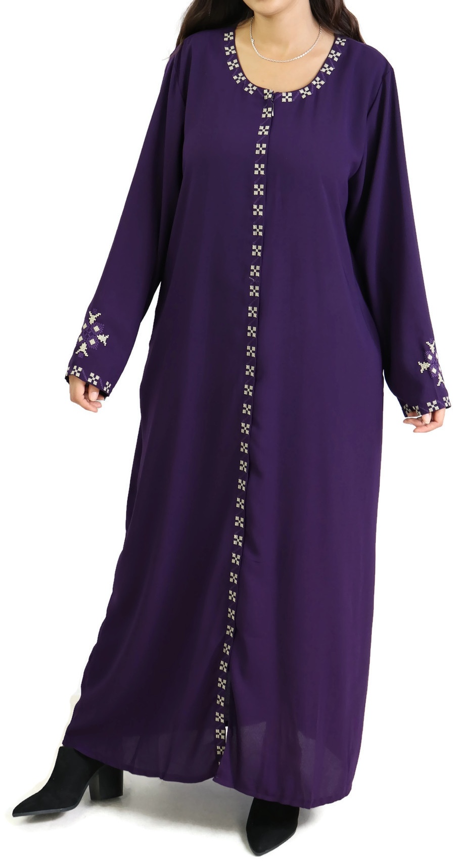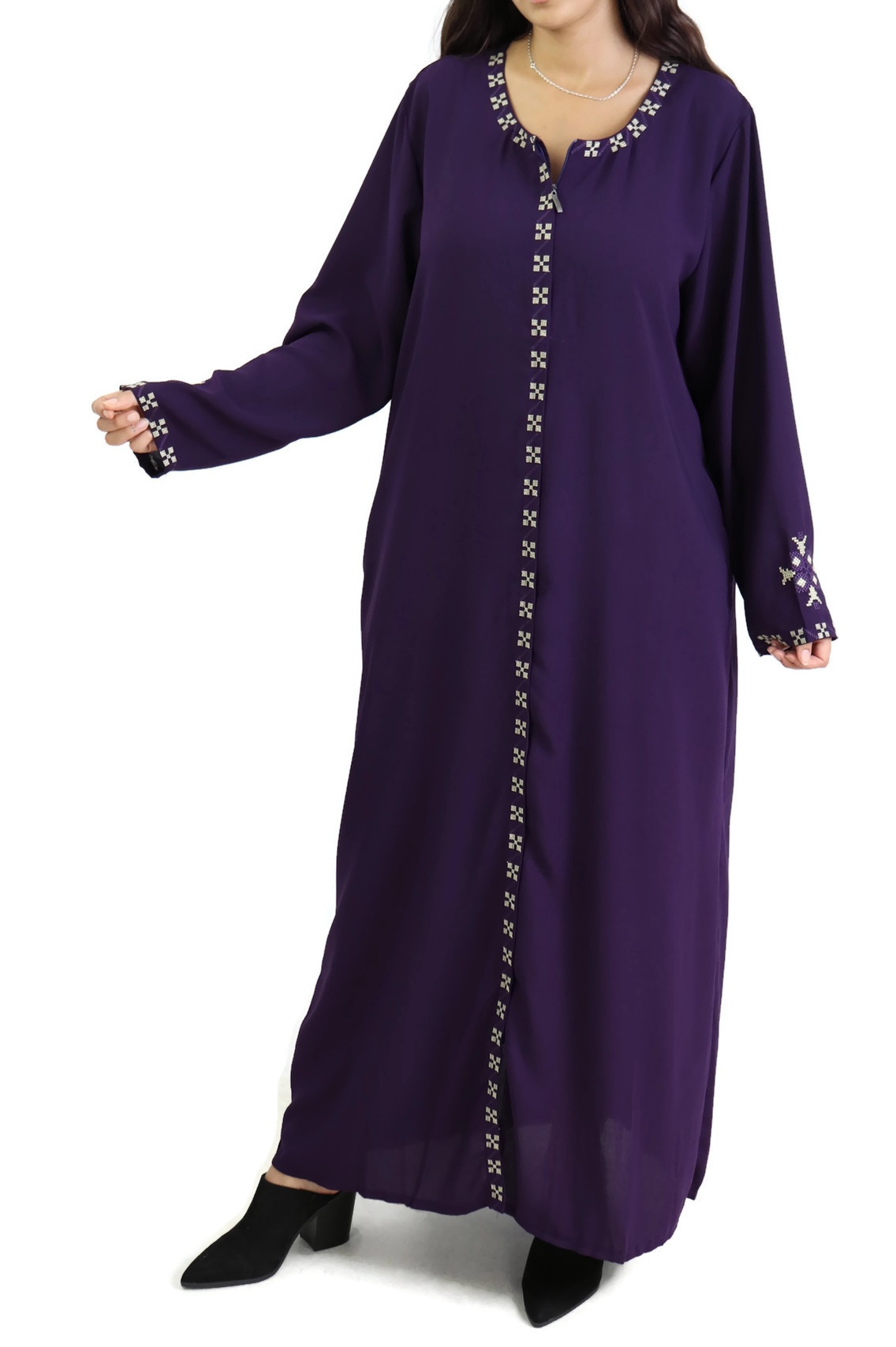 Robe longue brodée ouverture zippée - Couleur violet Vetement & Accessoire