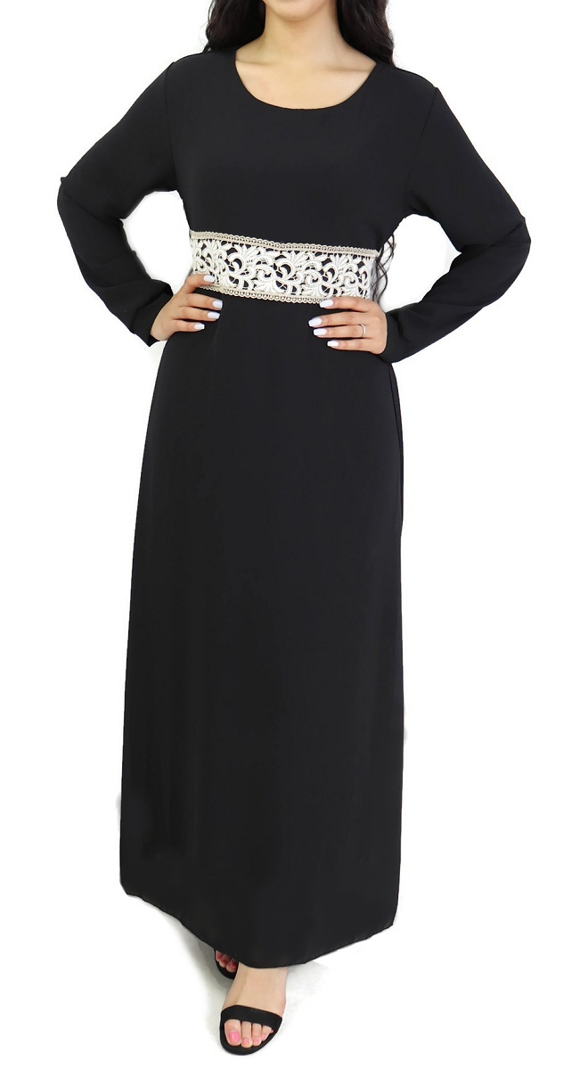 Robe noire fleurie tissu crêpe (Vetement Hijab) - REF. 32305 (29.90 €) - En Promotion à 22.90 €