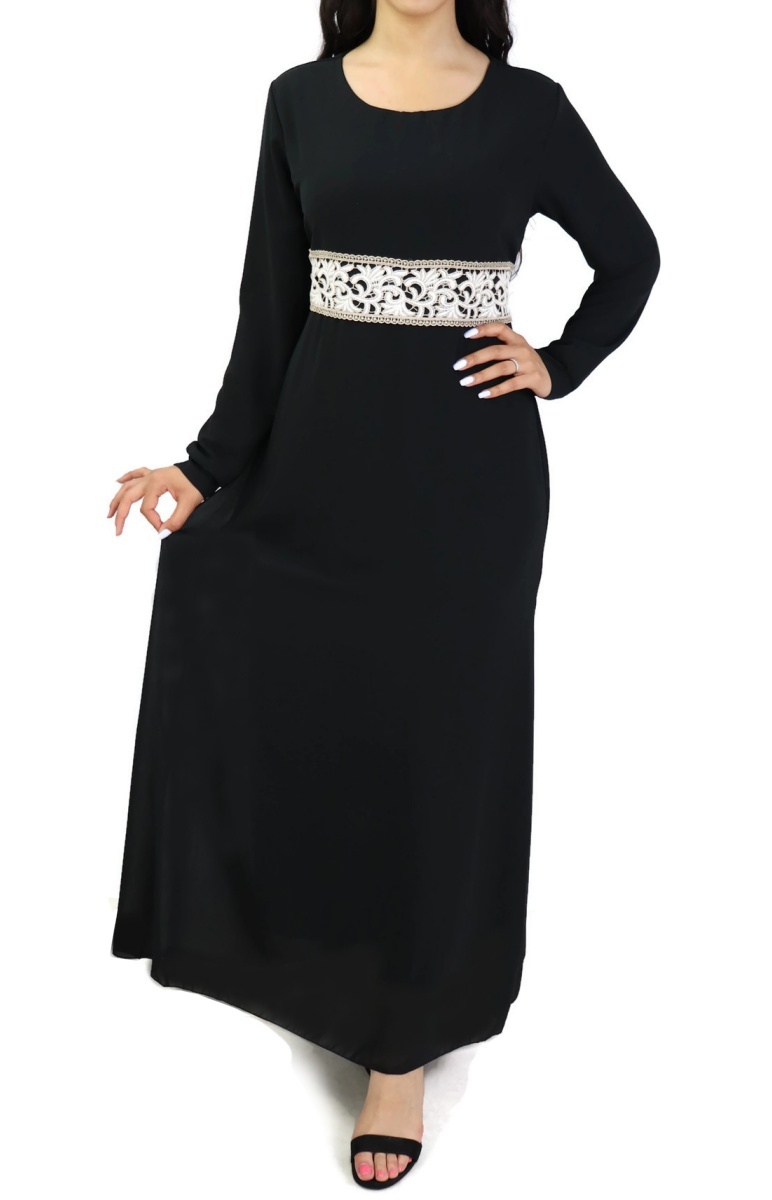 Robe longue fluide avec broderies blanches et dorées pour femme - Couleur noire Vetement & Accessoire