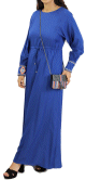 Robe longue bleue avec ceinture intégrée et broderies au niveau des manches - REF. 29824 (29.90 €)