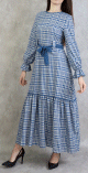 Robe longue à carreaux évasée - Couleur Bleu acier - REF. 32429 (35.00 €)