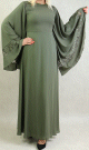 Robe de soirée maxi-longue élégante et raffinée manches kimono pour femme - Couleur kaki - REF. 34989 (39.00 €)