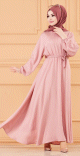 Robe longue ample et évasée en coton (Tenue pour femme voilée) - Couleur rose - REF. 36519 (45.00 €)
