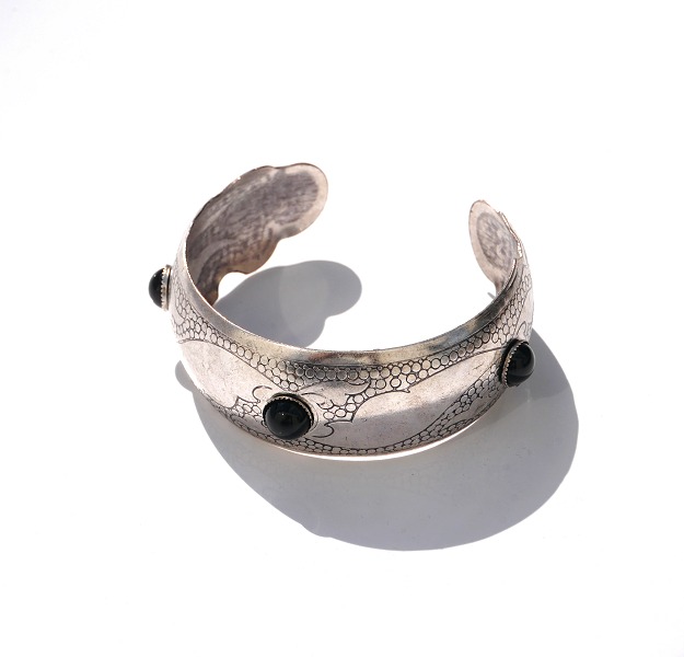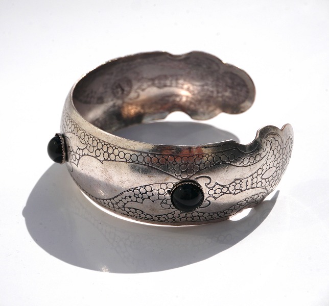 Bracelet de forme ovale ajustable en métal argenté ciselé orné de pierre colorée - REF. 16712 (15.00 €)