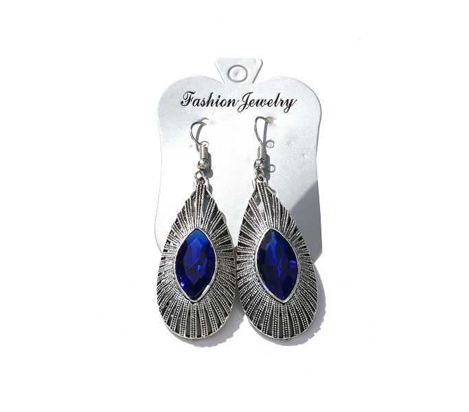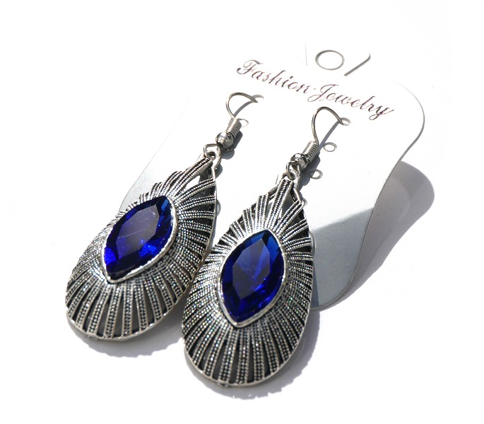 Boucles d'oreilles pendantes, style berbère, fabriquées en métal argenté - composition argent - délicatement ciselé, serties de pierres bleu...