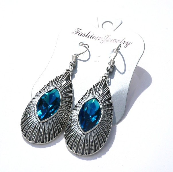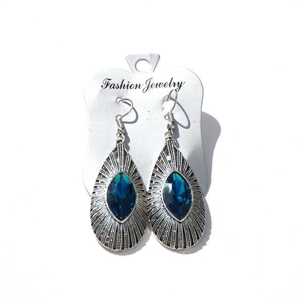 Boucles d'oreilles pendantes, style berbère, fabriquées en métal argenté - composition argent - délicatement ciselé, serties de pierres bleu clair...