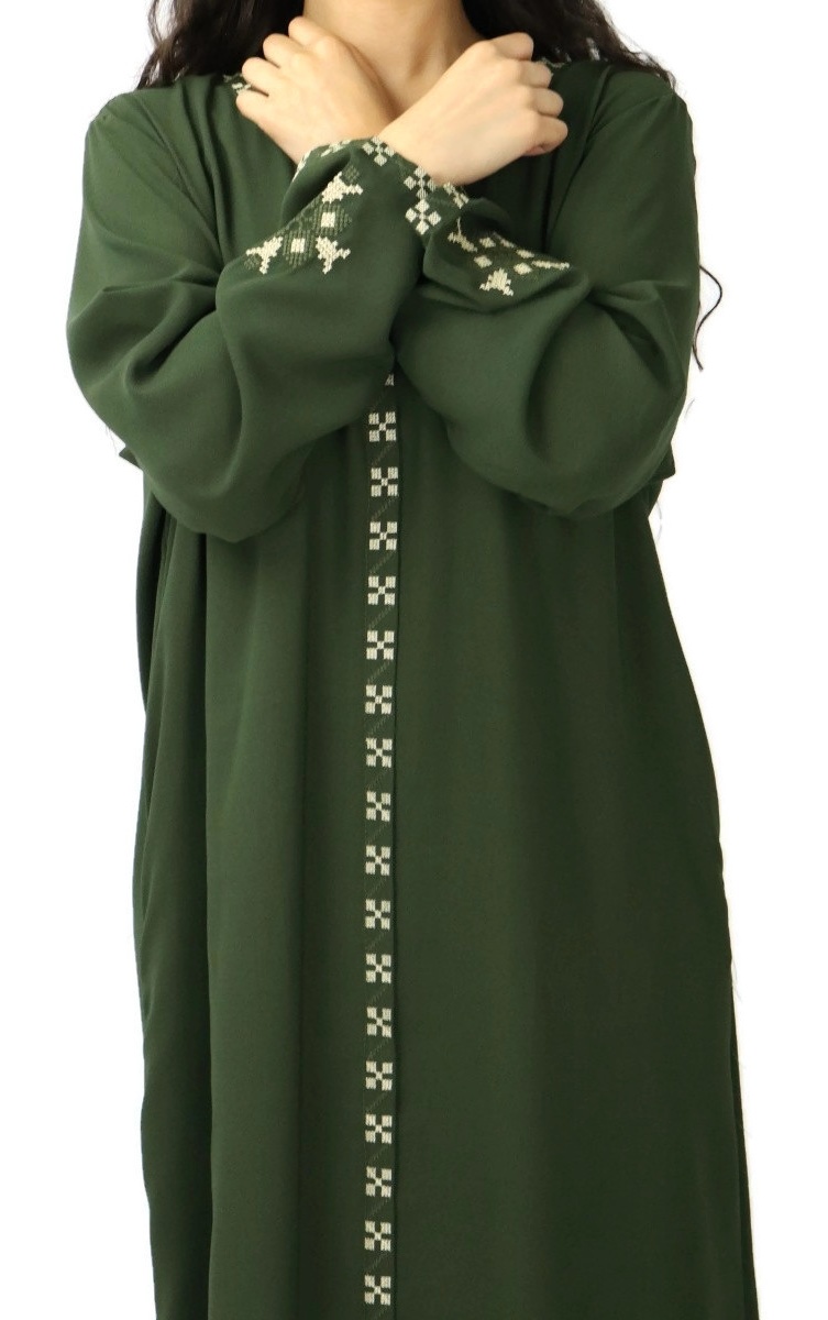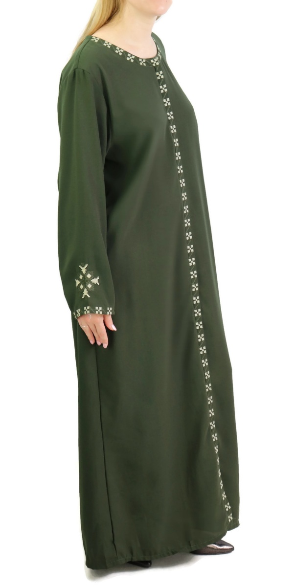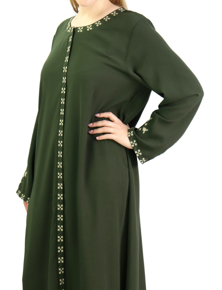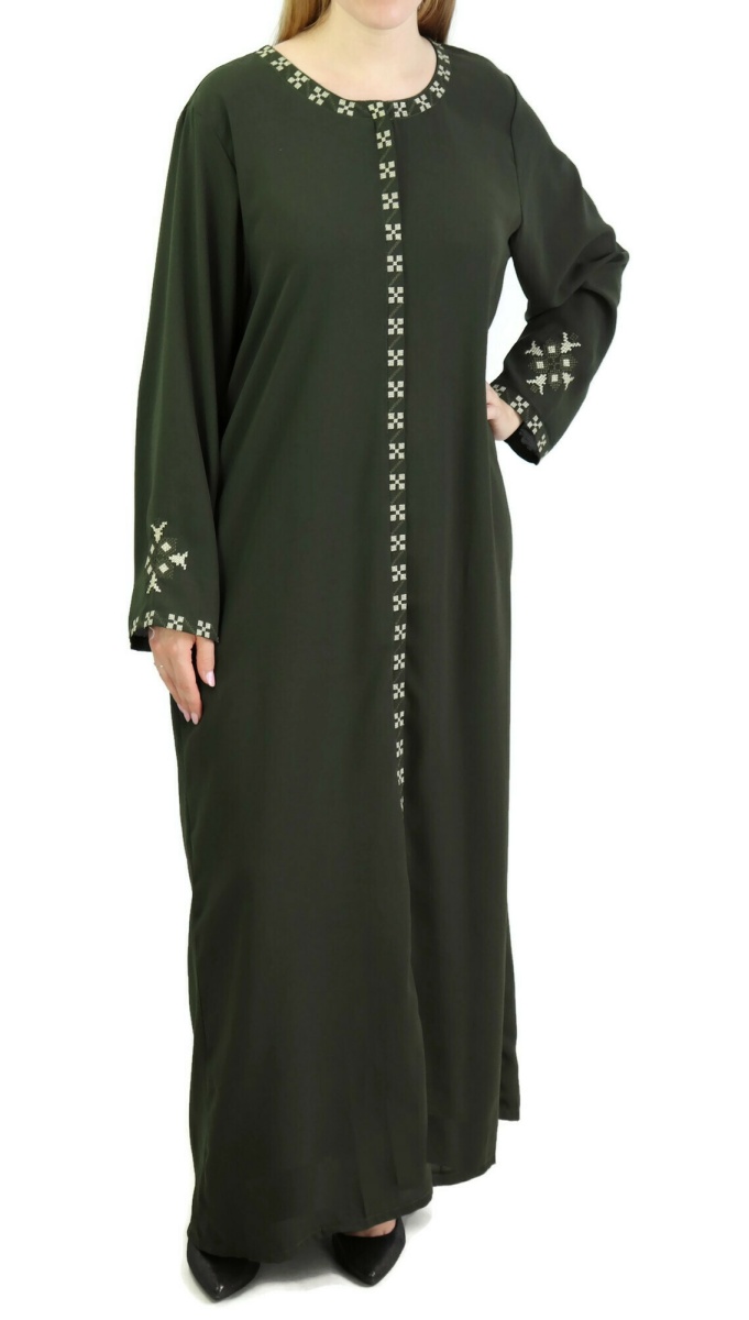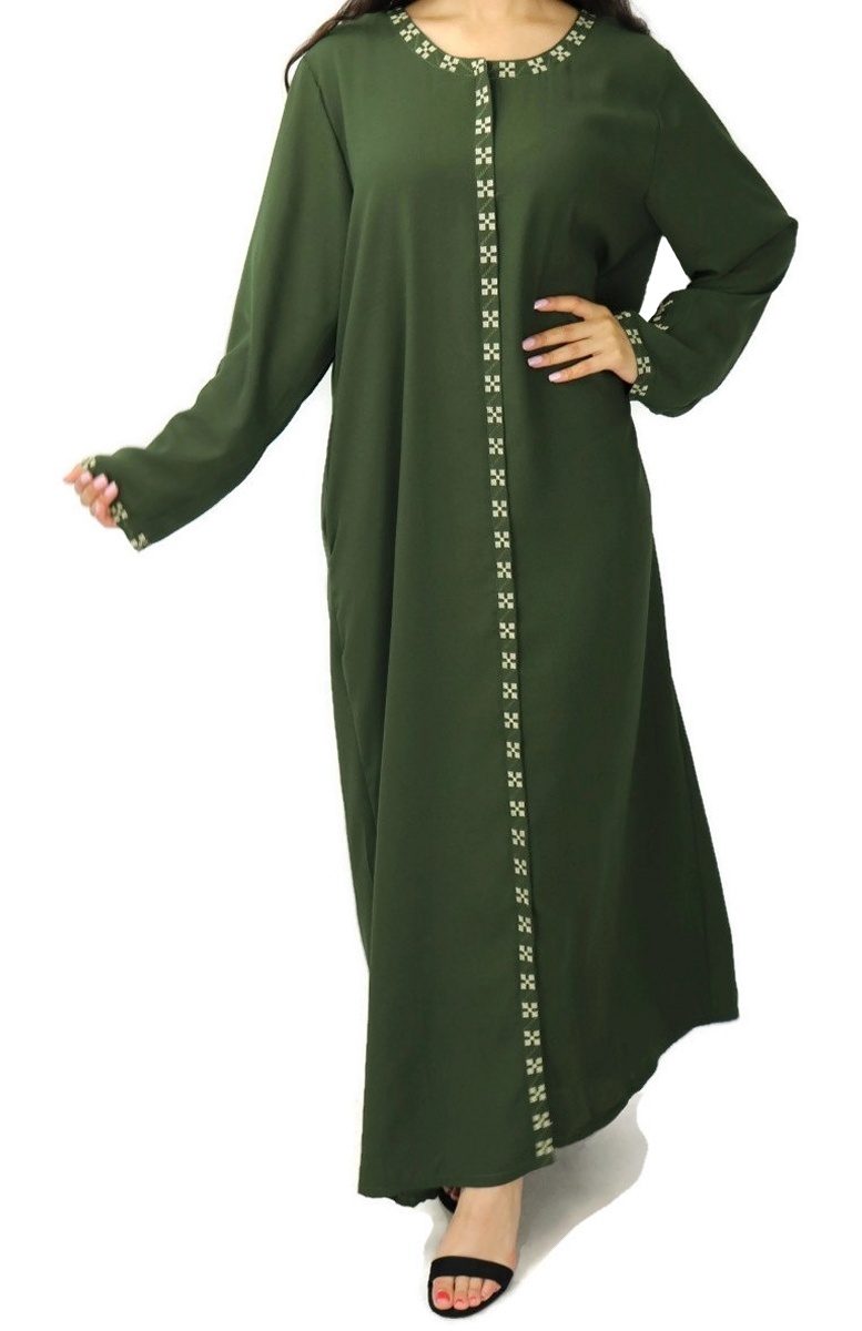 Robe longue brodée ouverture zippée - Couleur kaki Vetement & Accessoire