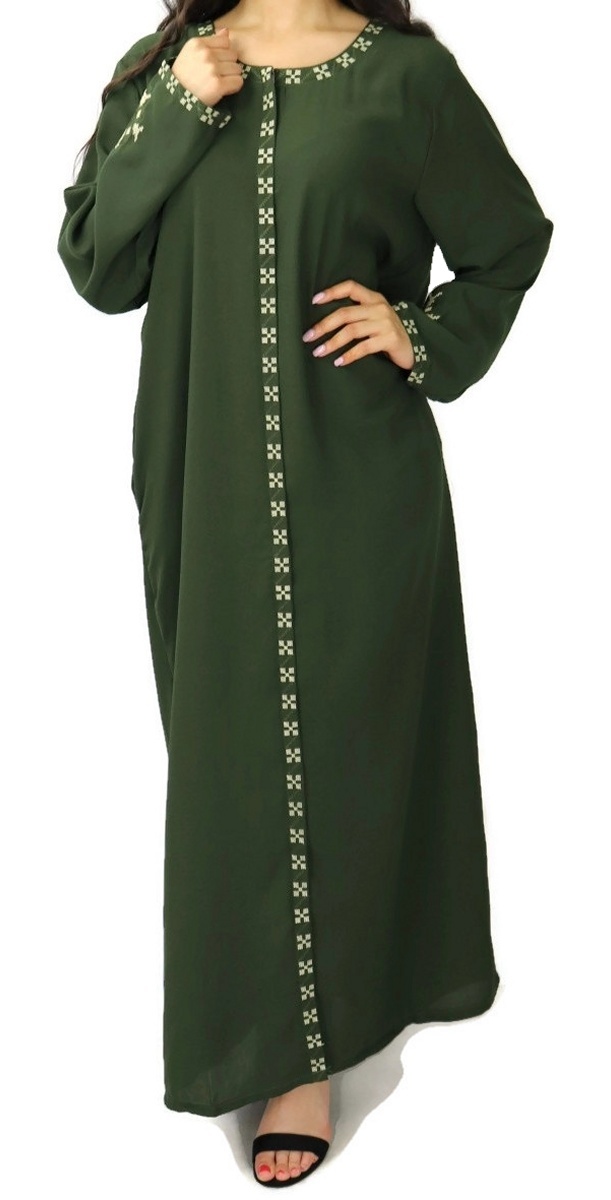 Robe longue et ample à capuche ornée de perles pour femme - Couleur Kaki - REF. 34159 (30.00 €) - En Promotion à 22.90 €