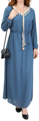 Robe maxi-longue fluide avec cordons à pompons pour femme - Couleur Bleu acier - REF. 30656 (29.90 €) - En Promotion à 24.90 €