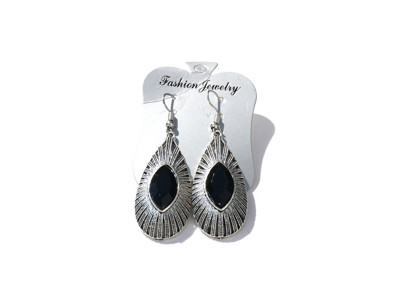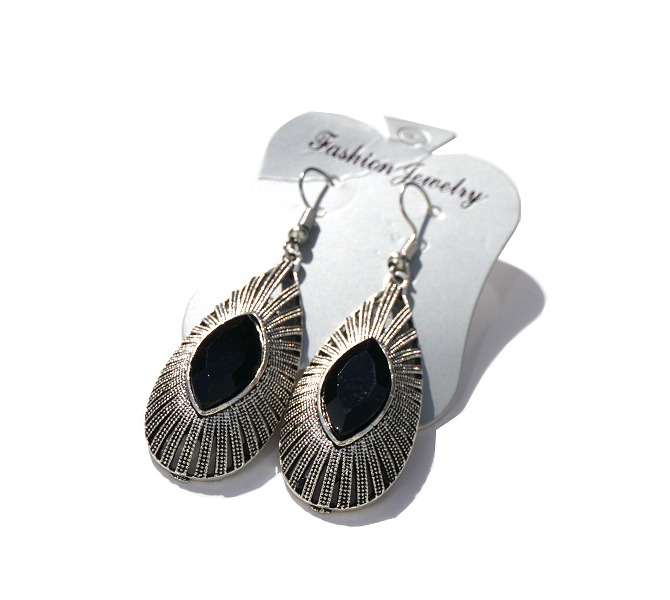Boucles d'oreilles pendantes, style berbère, fabriquées en métal argenté - composition argent - délicatement ciselé, serties de pierres noir...