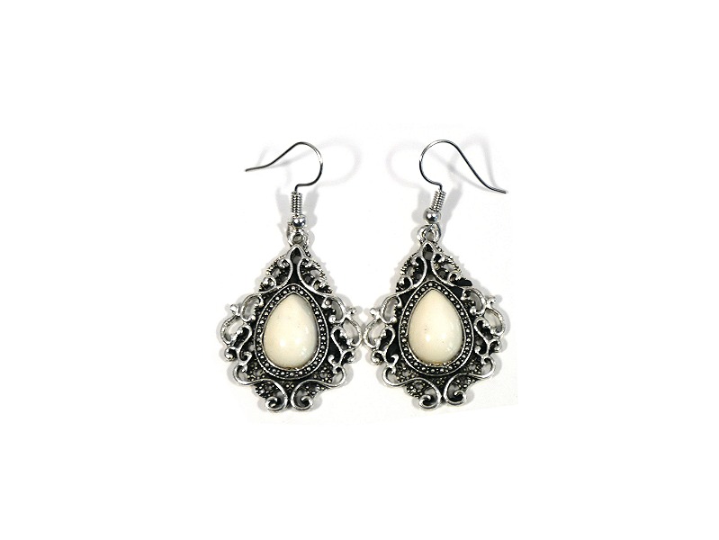 Boucles d'oreilles pendantes en métal argenté ciselé serties de pierres noir - REF. 29627 (5.90 €)