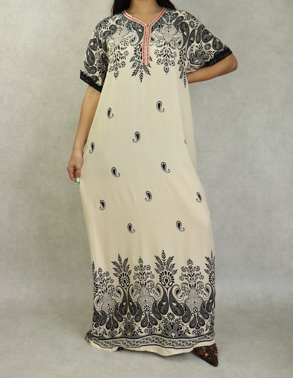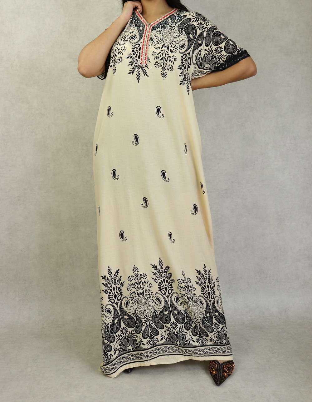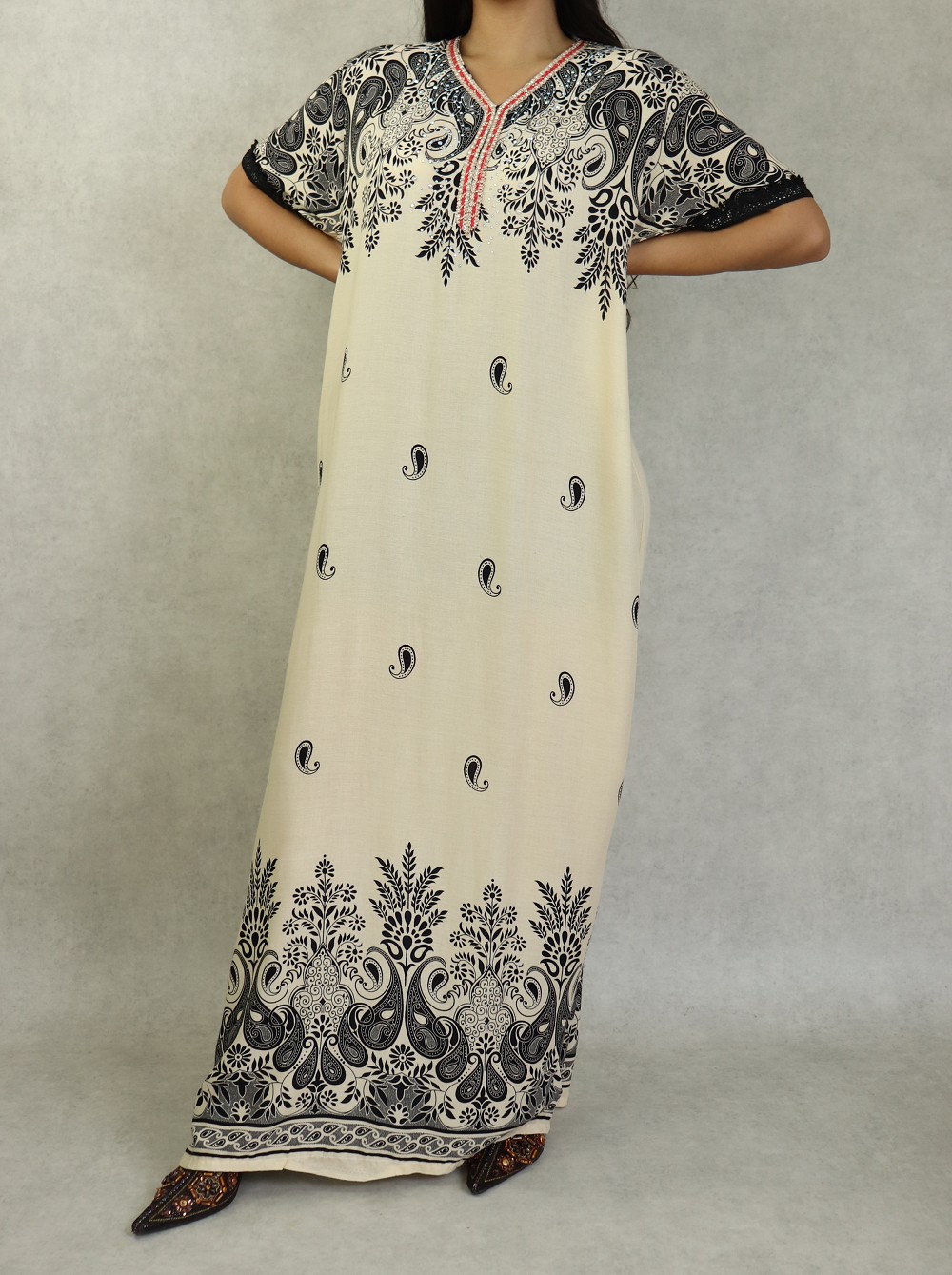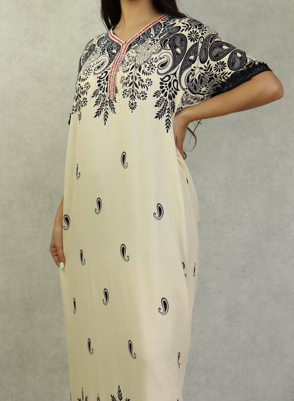 Ces motifs style cachemire sur le haut et le bas ainsi que sa broderie au niveau du col en font un modèle original et agréable à porter au quotidien avec sa matière 100% coton.