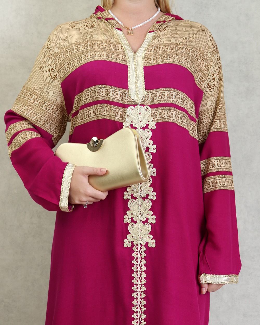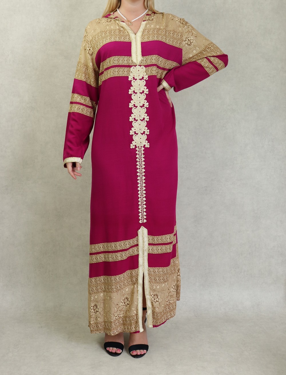 Robe longue style oriental a capuche avec broderie et strass pour femme - Couleur fuchsia