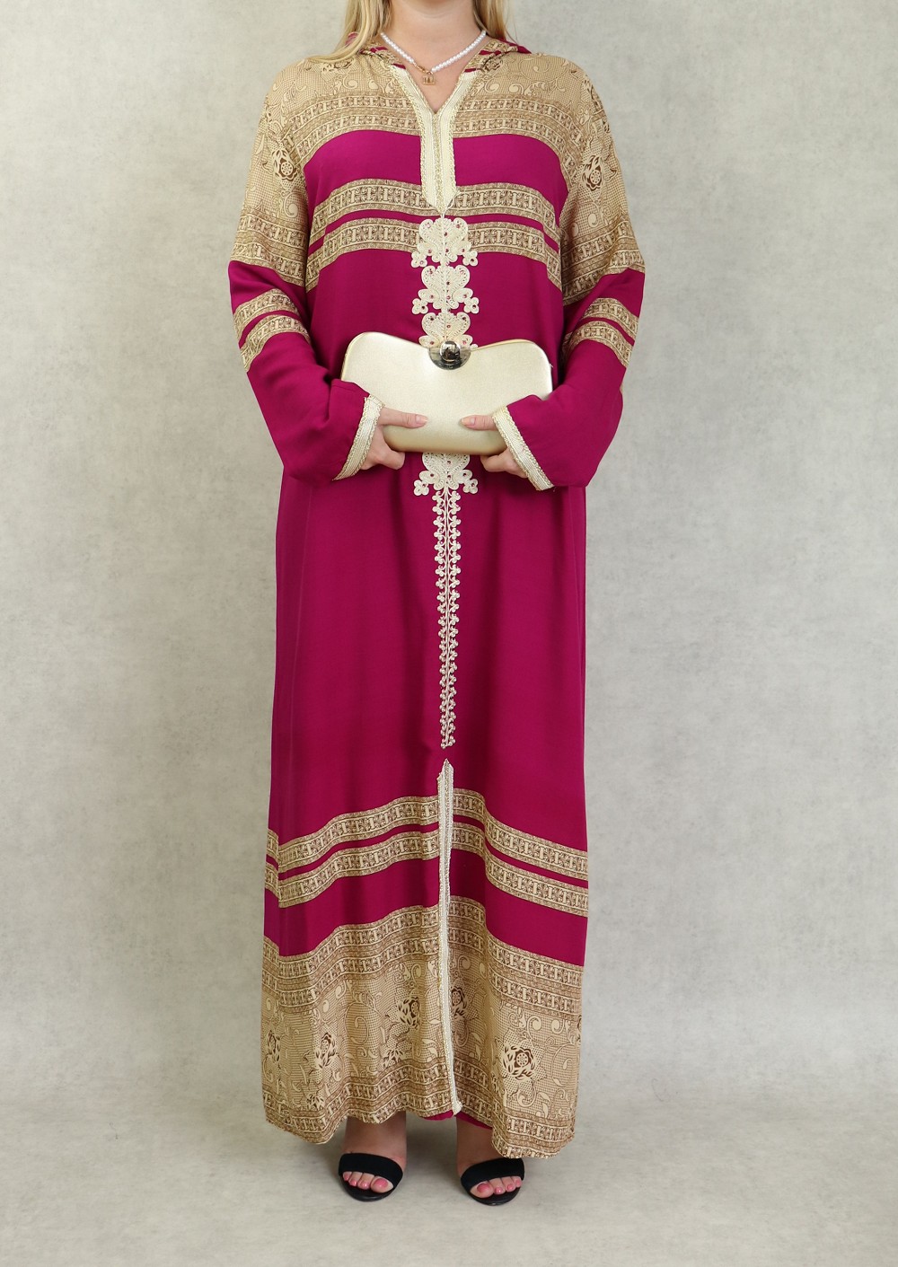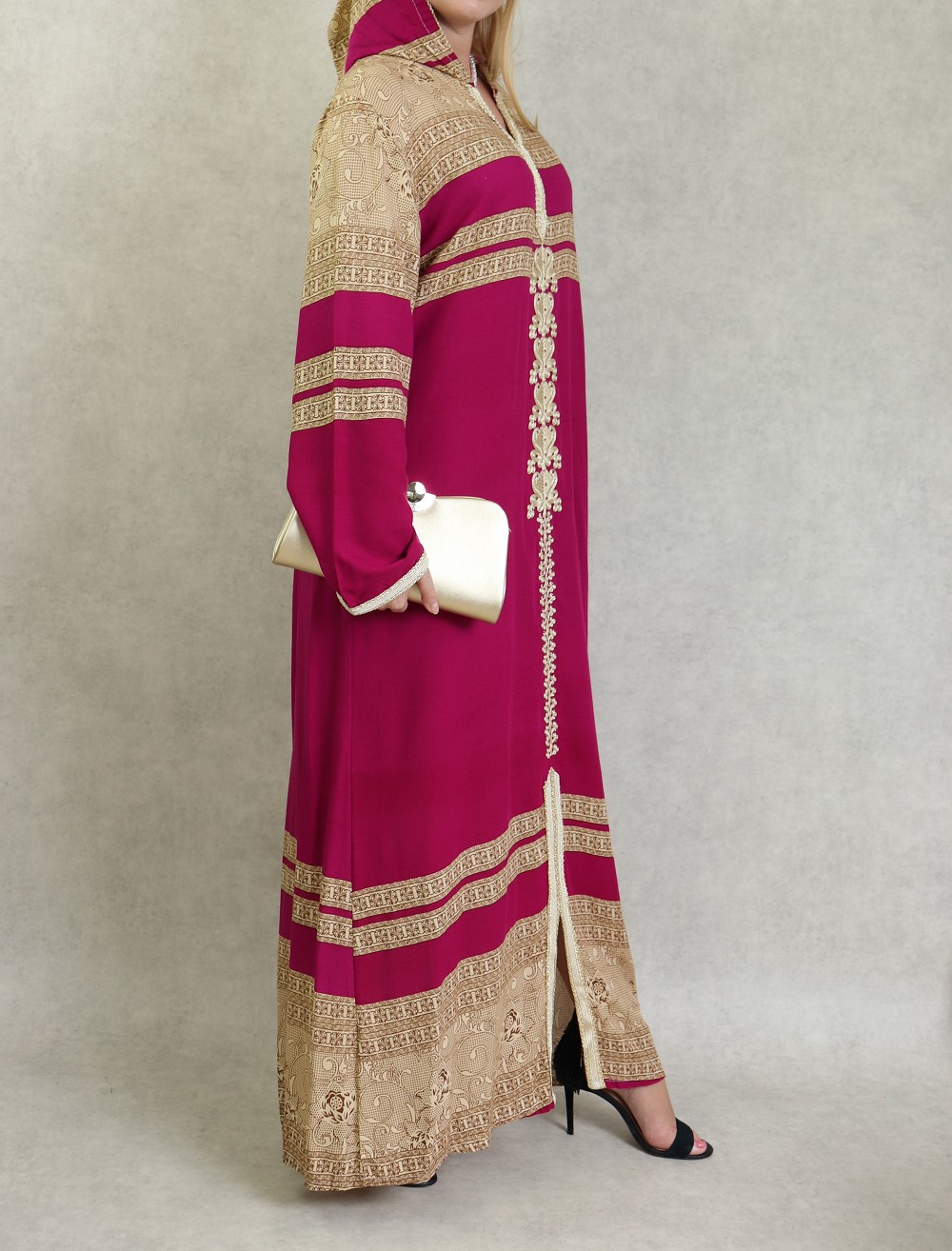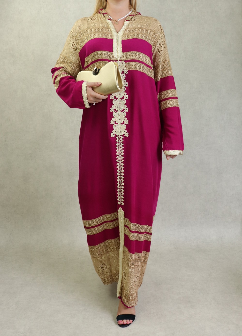 Djellaba marocaine brodée à capuche et manches longues pour femme - Couleur Framboise - REF. 33663 (28.00 €)