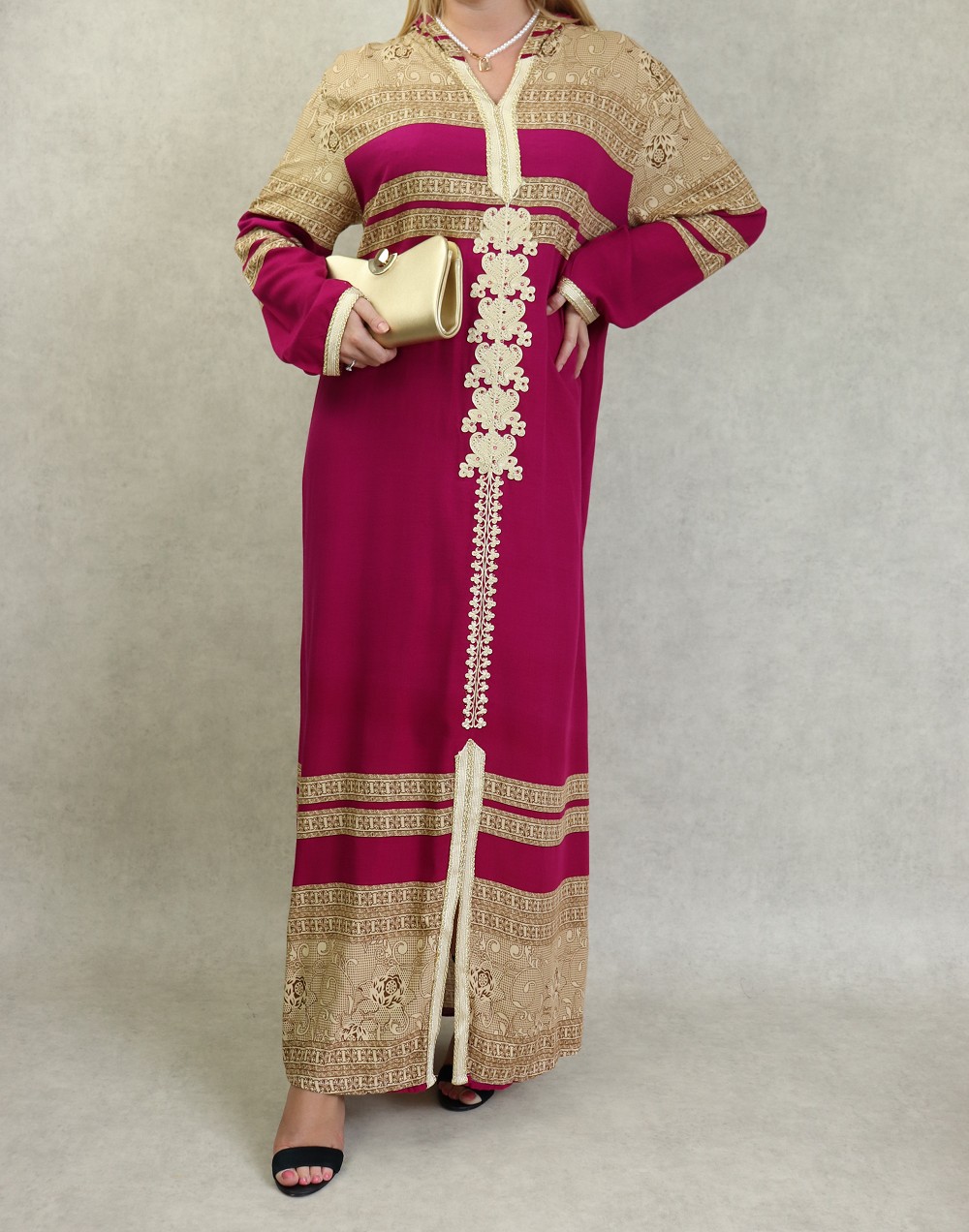 Robe longue style oriental à capuche avec broderie et strass pour femme - Couleur fuchsia Vetement & Accessoire