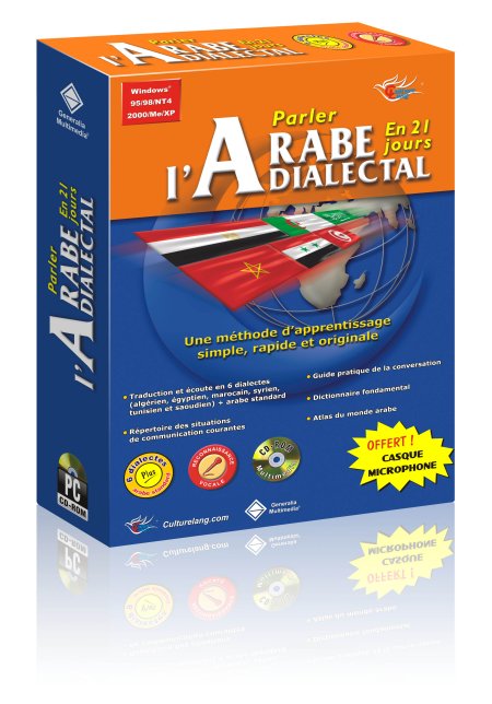 Le cédérom offre aussi la possibilité de lire et d'écouter - dans leurs particularités phonétiques - tous les mots, phrases et dialogues proposés en arabe standard et en 6 dialectes (algérien, égyptien, marocain, tunisien, saoudien et syrien), avec traduction intégrale, simultanée ou à la demande, en français.
