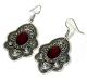 Boucles d'oreilles pendantes en métal argenté ciselé serties de pierres bordeaux - REF. 29616 (5.90 €)