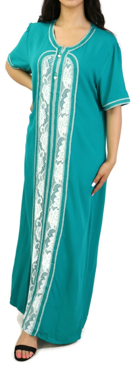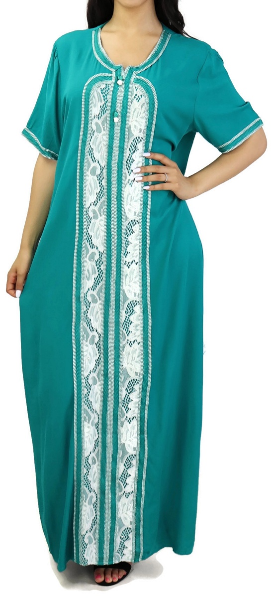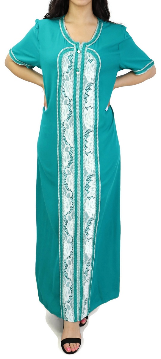 Robe d'intérieur brodée manches courtes avec strass couleur vert opale Vetement & Accessoire