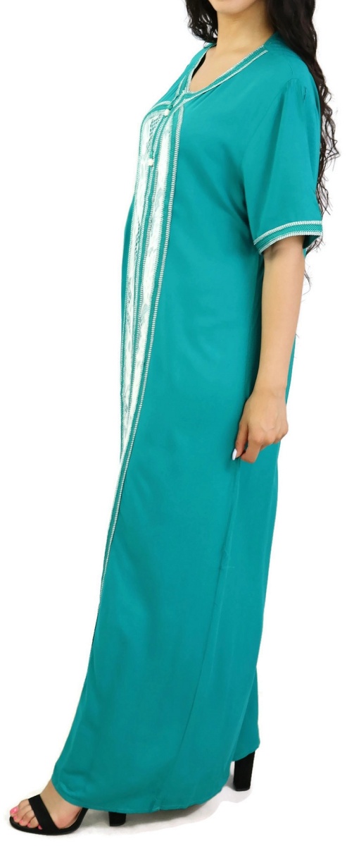 Robe longue manches courtes style oriental brodée avec strass et perle pour femme - Couleur Bleu pétrole - REF. 35000 (26.00 €)