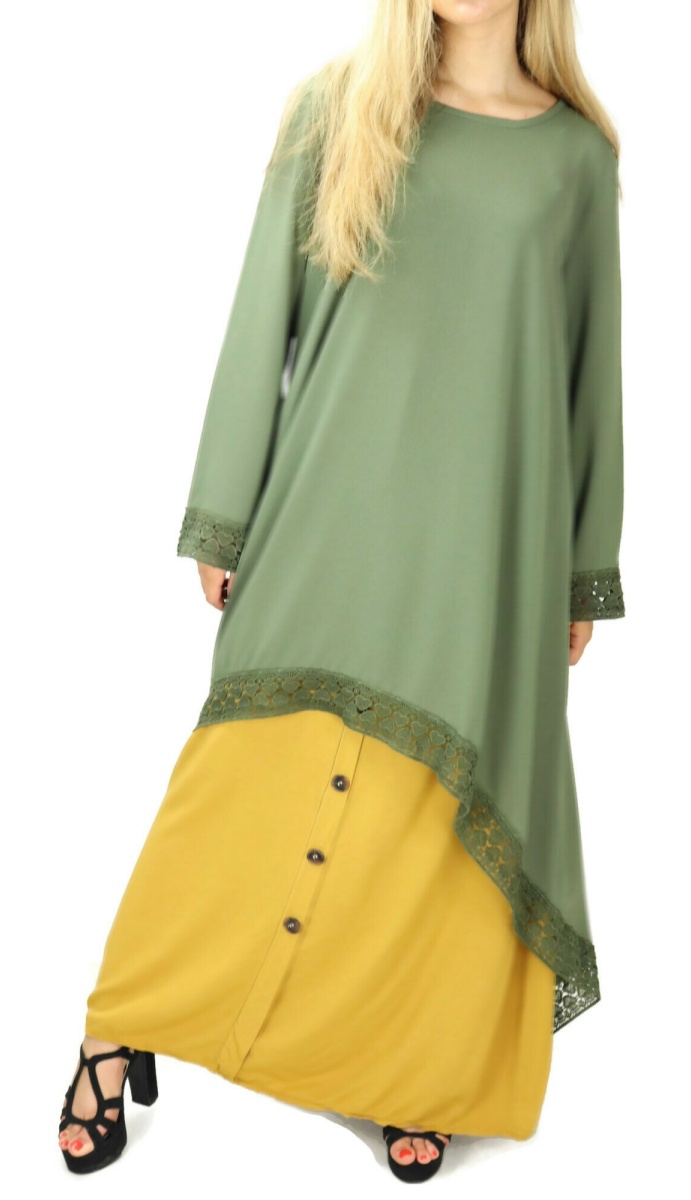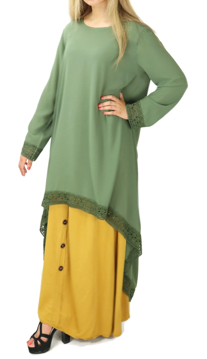 Tunique casual ample évasée avec dentelle pour femme - Couleur kaki Vetement & Accessoire