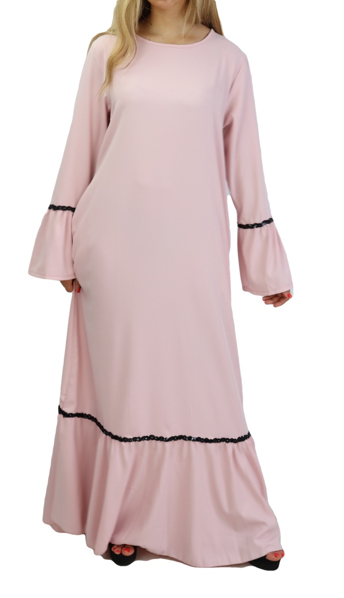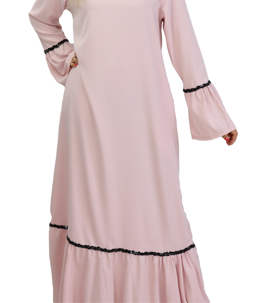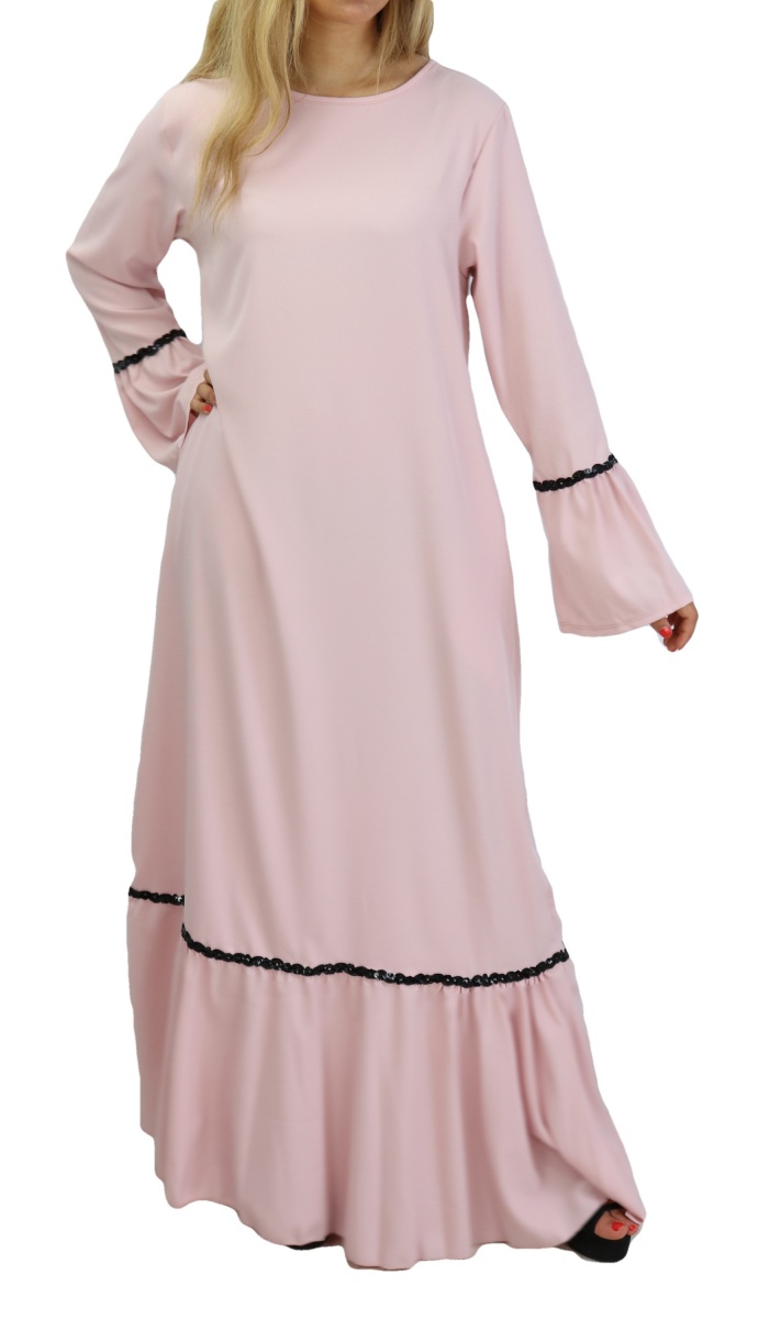 Chemise longue et ample pour femme (Vetement hijab tendance) - Couleur rose poudre