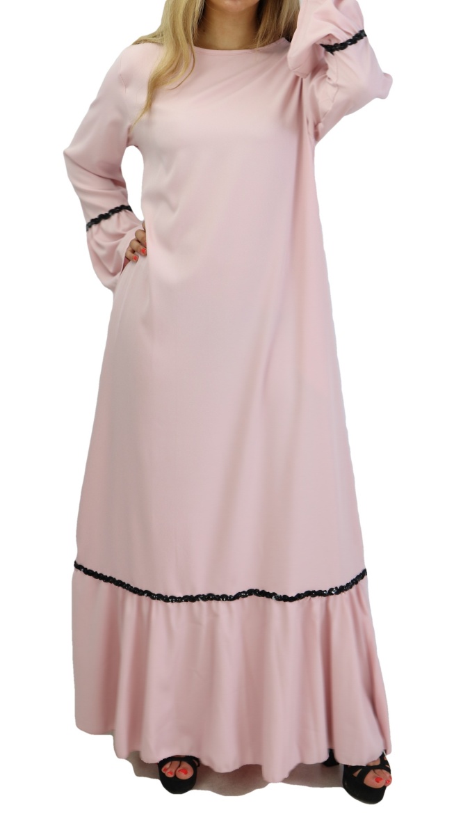 Robe longue avec dentelles et strass - Couleur rose clair Vetement & Accessoire