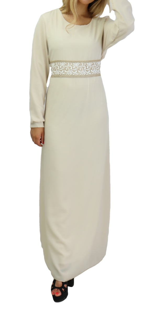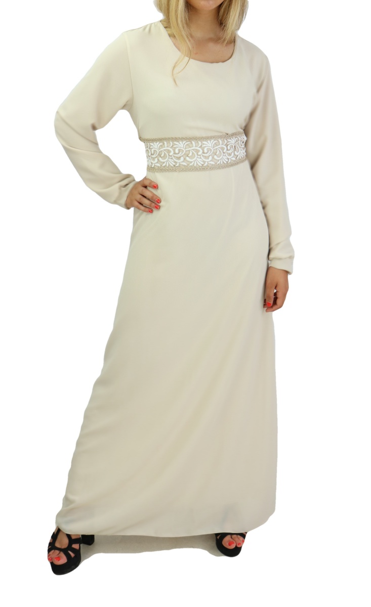 Cette robe en mousseline entièrement doublée fera sensation lors de vos soirées. On aime sa broderie fine au niveau de la taille, sa ceinture intégrée qui s'attache et se détache, sa coupe droite et ses finitions irréprochables.