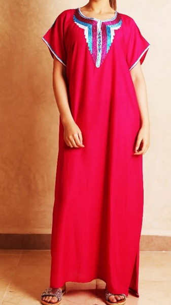 Gandoura / Robe traditionnelle marocaine manches courtes pour femme - Couleur Fuchsia Vetement & Accessoire