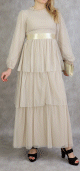 Robe longue en tulle à volants style demoiselle d'honneur - Couleur Beige - REF. 31279 (39.00 €)