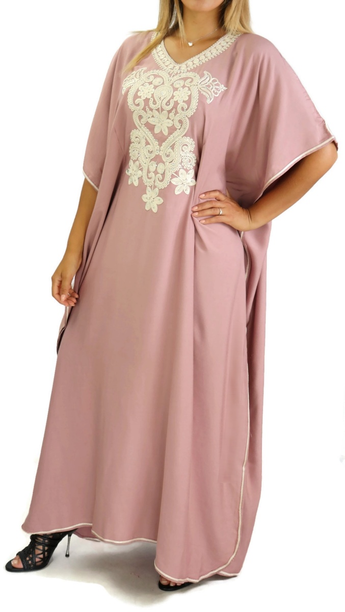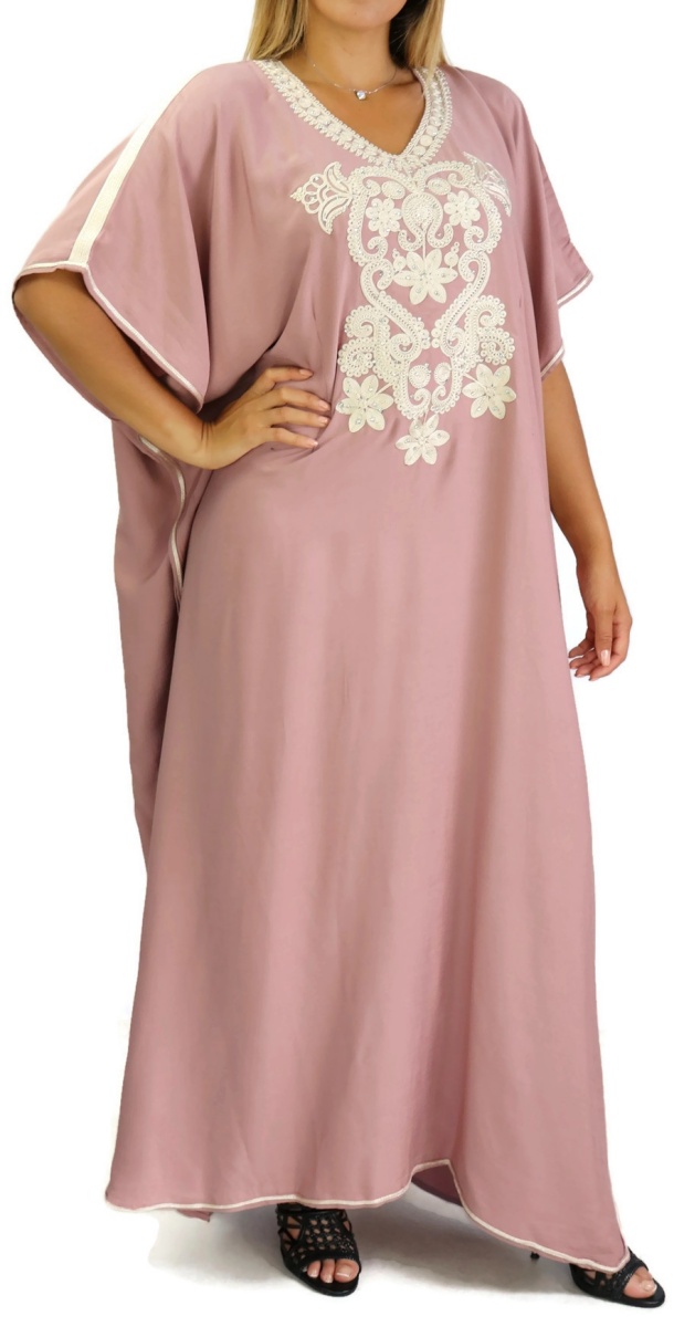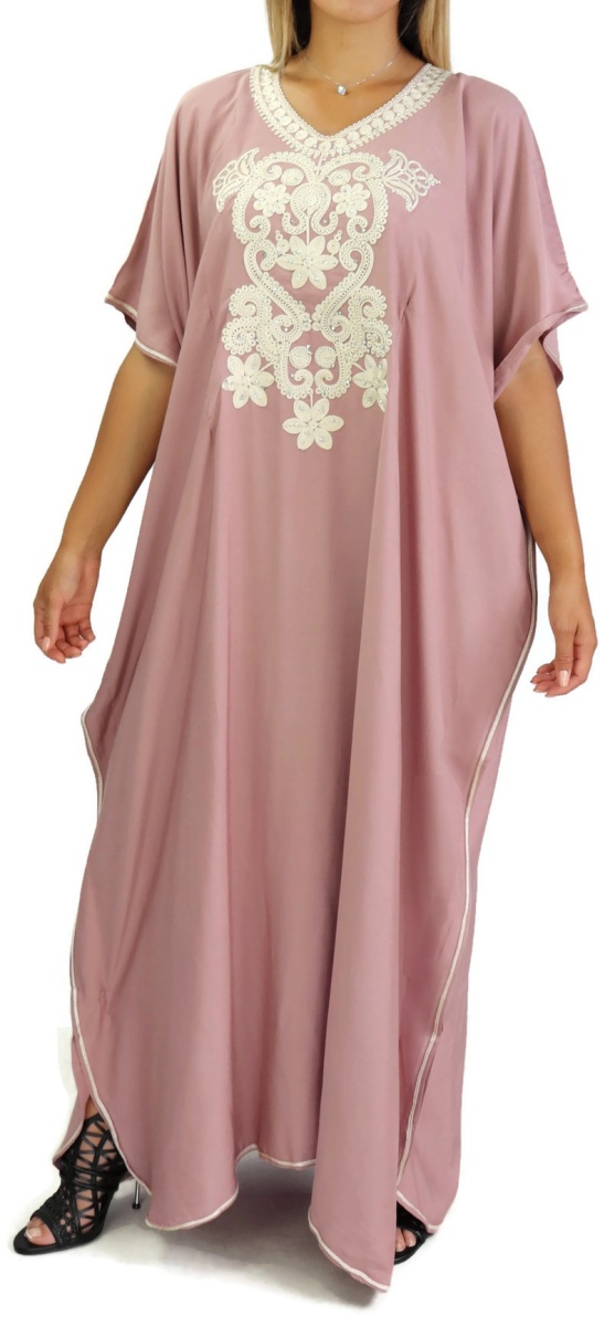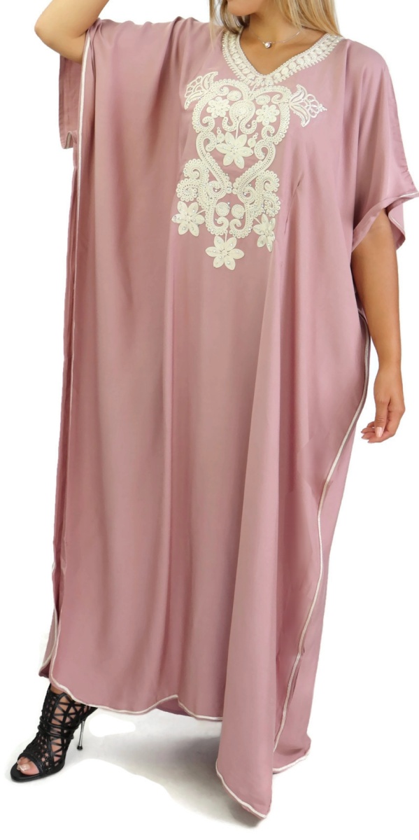 Robe Caftan avec brodé au niveau des extrémités - Couleur Vieux rose - REF. 33349 (35.00 €)