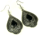 Boucles d'oreilles pendantes en métal argenté ciselé serties de pierres noir - REF. 29577 (5.90 €)
