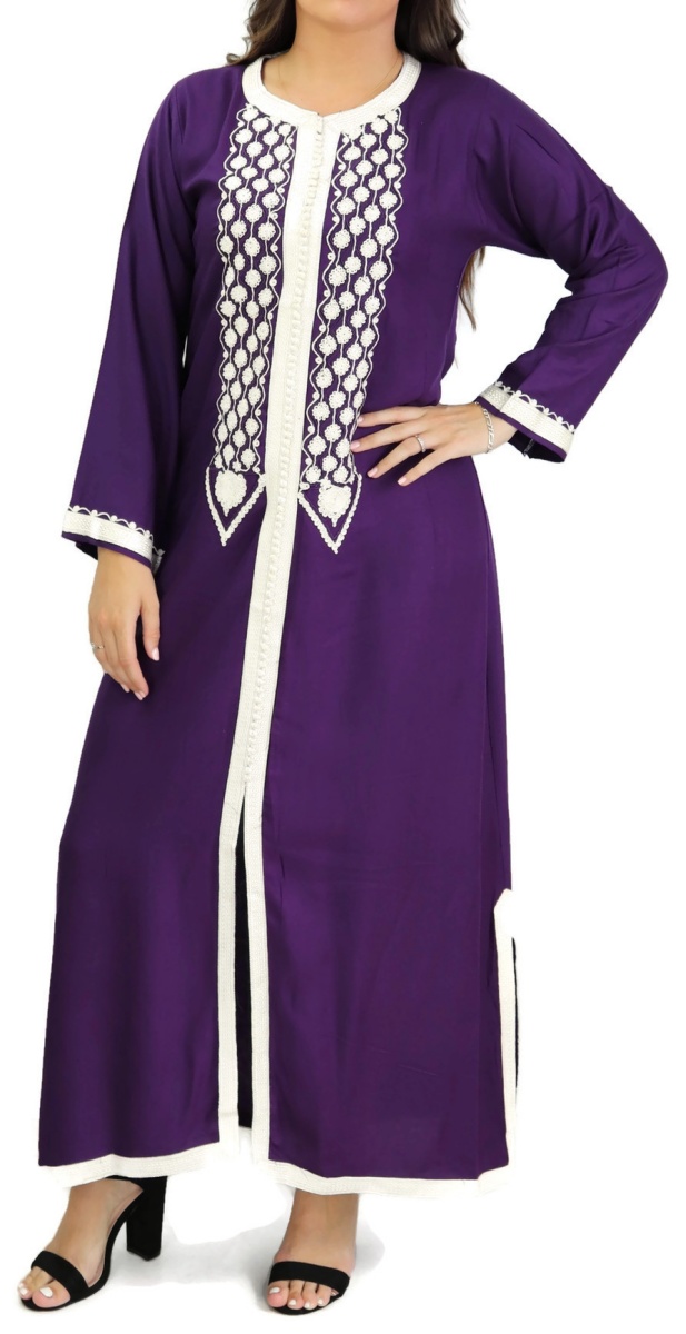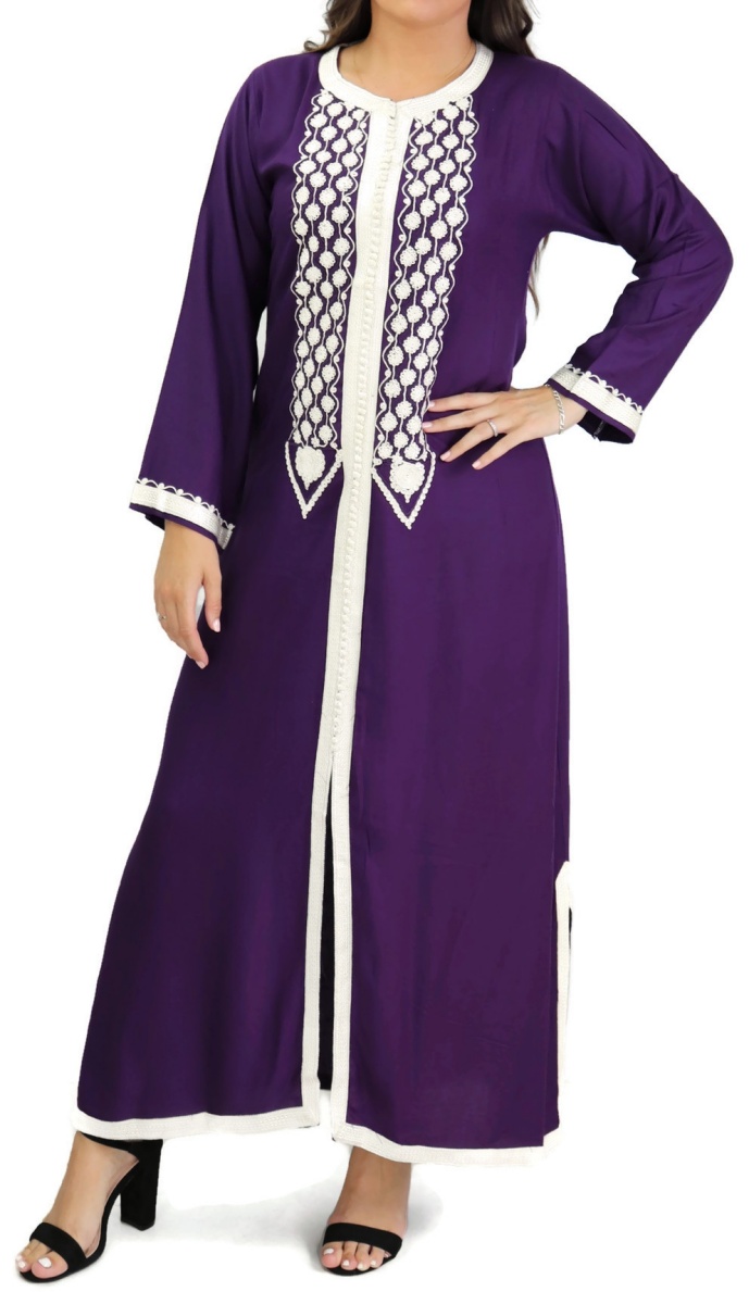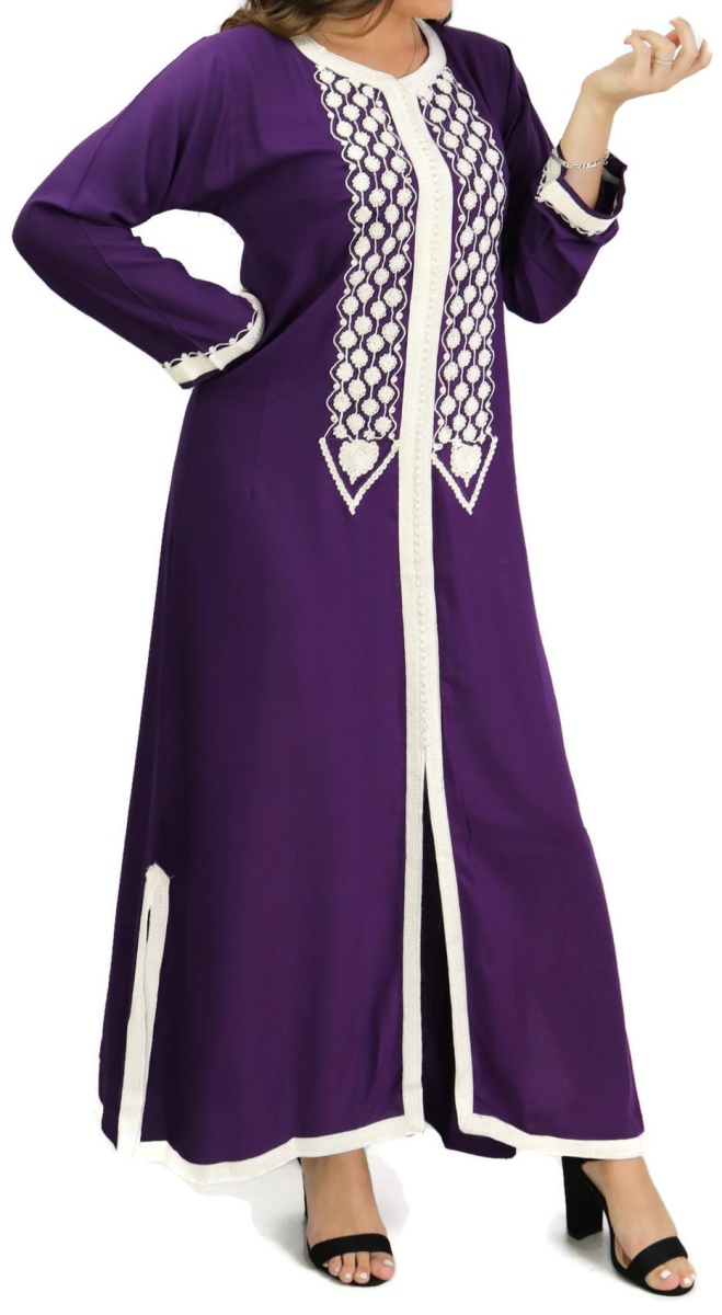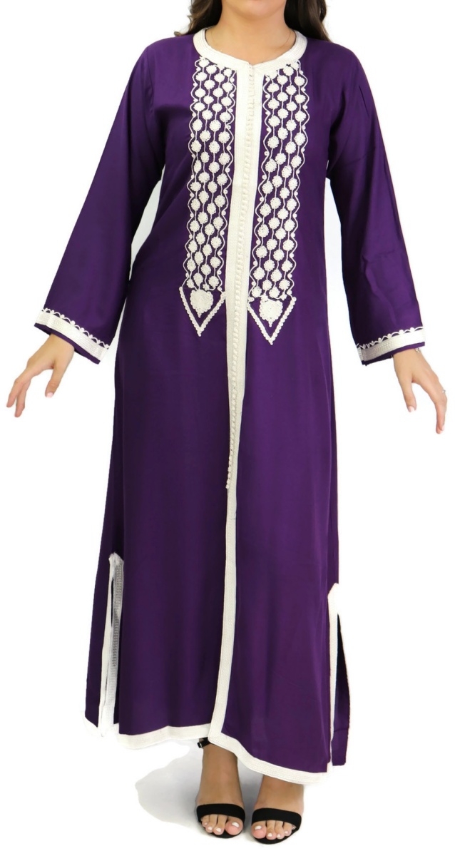 Robe Marocaine : Gandoura longue brodée fabriquée au Maroc - Couleur Violet Vetement & Accessoire
