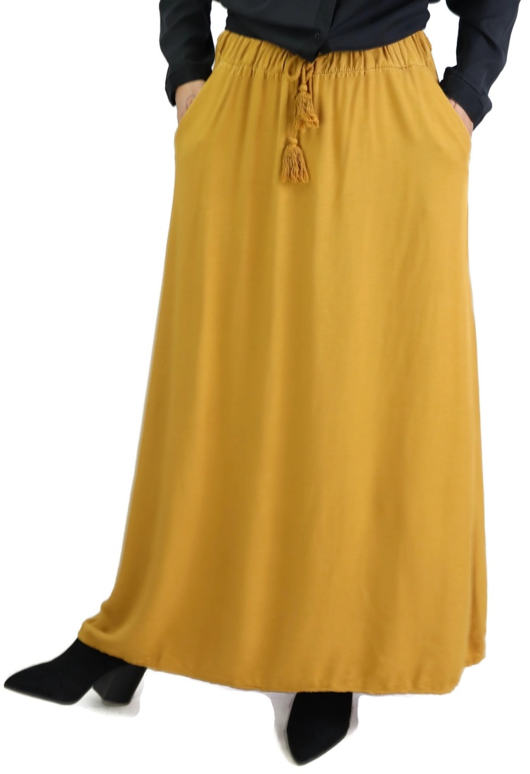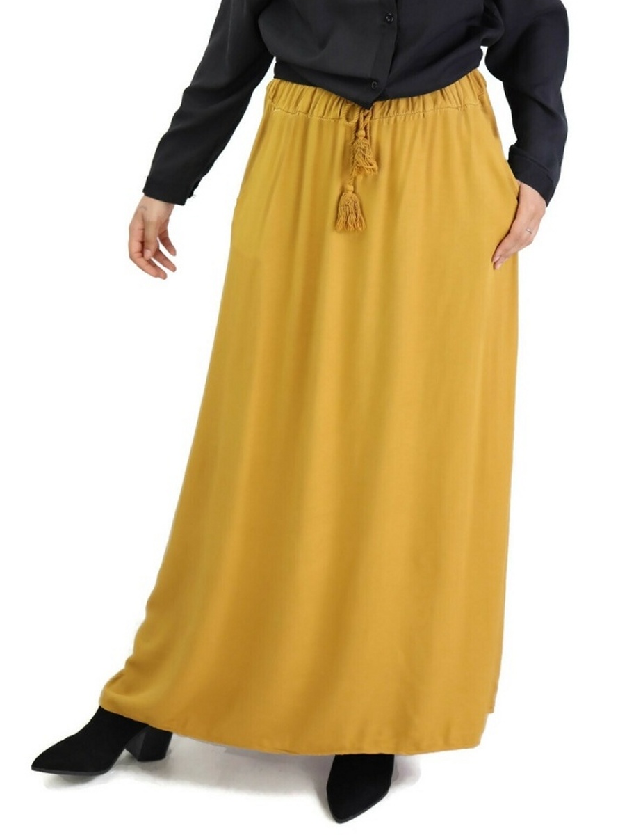 Succombez à cette jupe qui dispose de deux poches sur les côtés pour ranger vos effets, à la taille élastiquée avec cordelettes tressées que vous pouvez serrer ou nouer. Sa matière fluide et son tissu en viscose léger font d'elle la pièce à acquérir ce printemps-été.