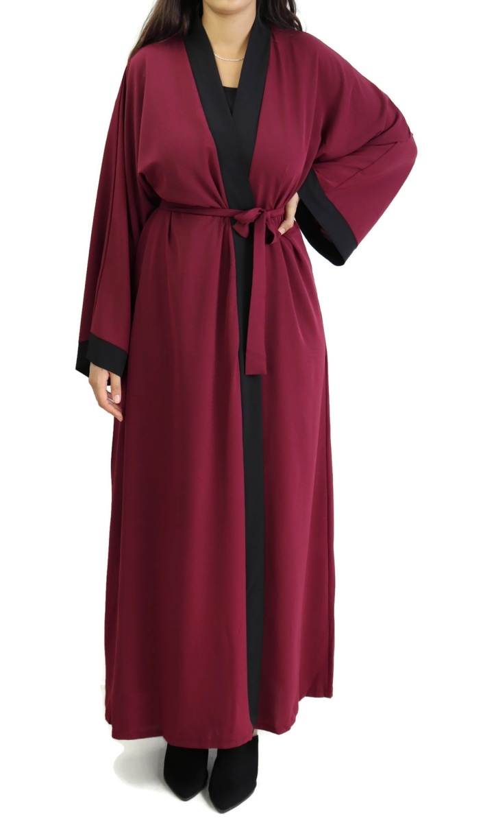 Kimono avec sa robe intégrée pour femme - Couleur Grenat et Noir Vetement & Accessoire