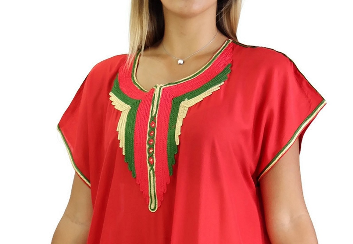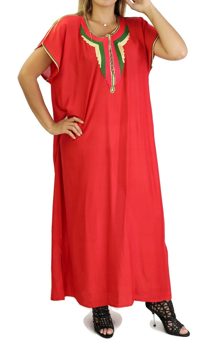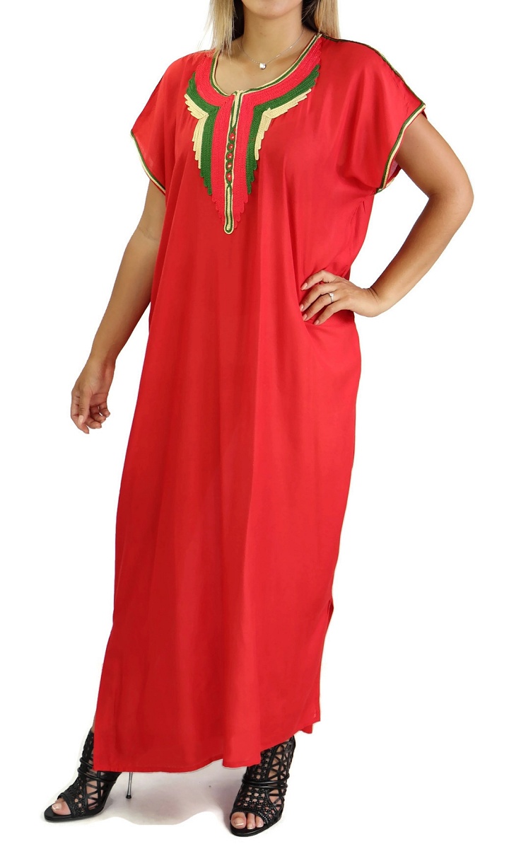 Gandoura / Robe traditionnelle marocaine manches courtes pour femme - Couleur Rouge Vetement & Accessoire