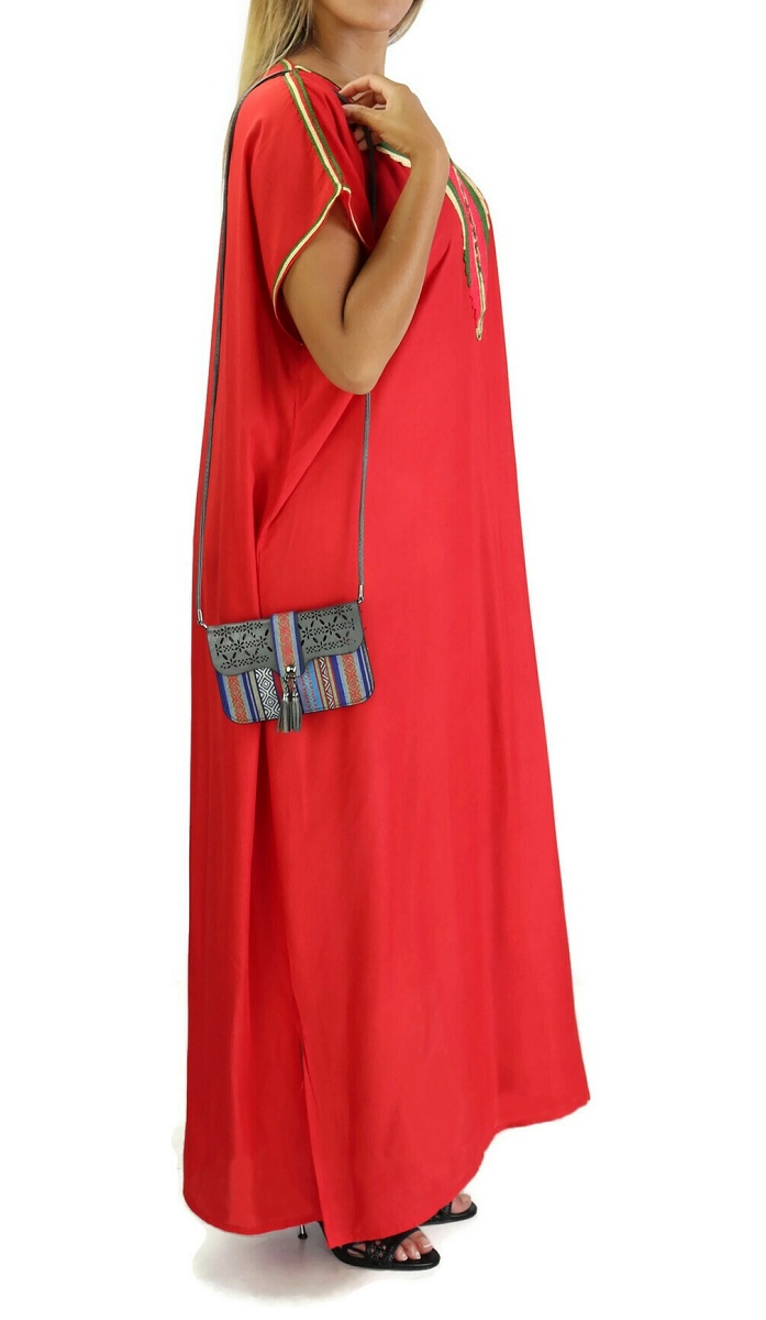 Gandoura / Robe traditionnelle marocaine manches courtes pour femme - Couleur Rouge