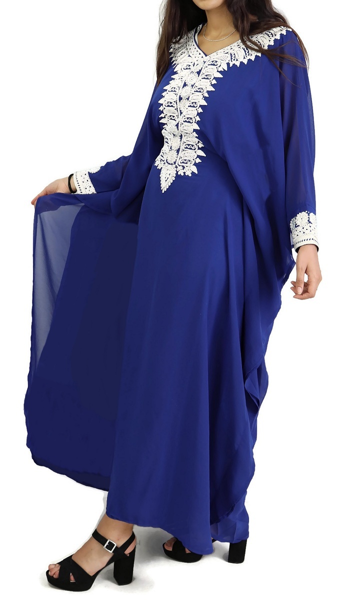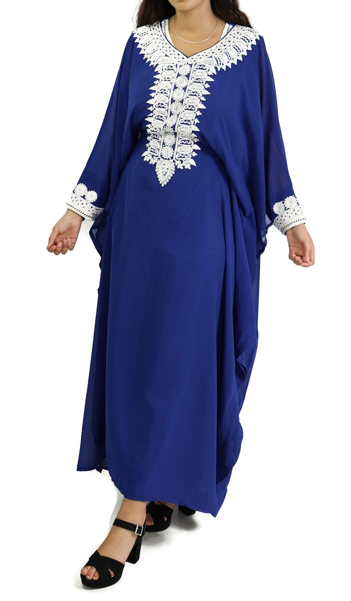 Robe tunisienne manches courtes avec broderies - Couleur Bleu roi - REF. 36062 (26.00 €)