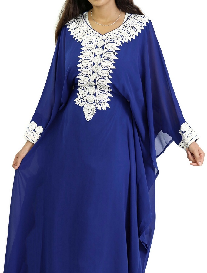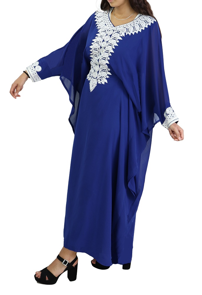 Robe de soirée orientale avec effet papillon décorée de broderies et de strass - Couleur bleue Vetement & Accessoire