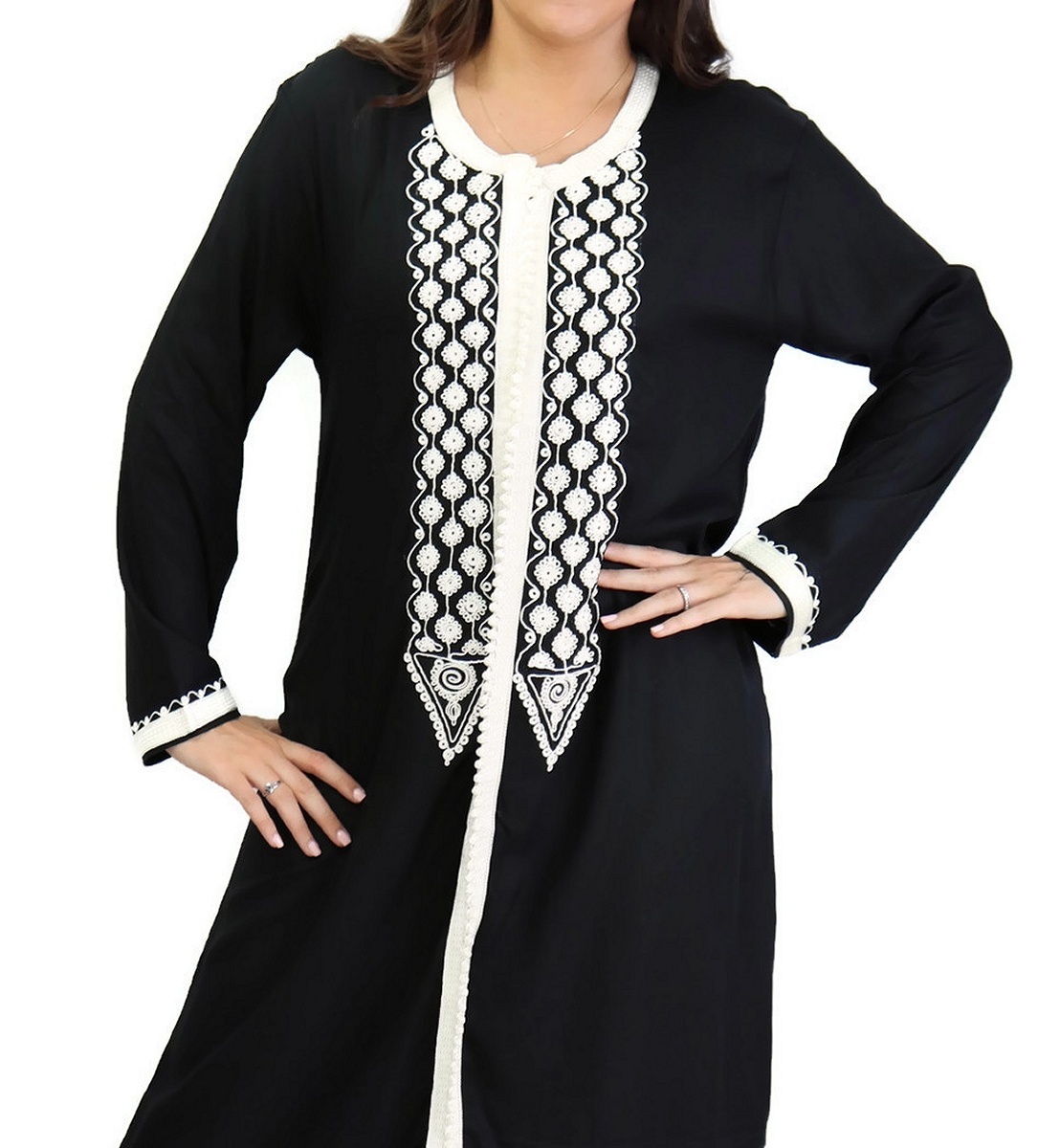 Très belle robe marocaine réalisée dans un tissu épais (non transparent), fluide et doux au toucher (coton).