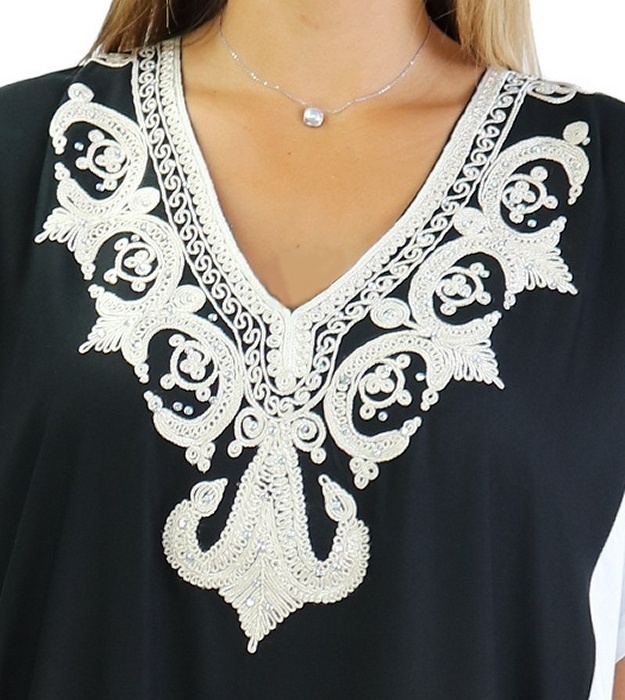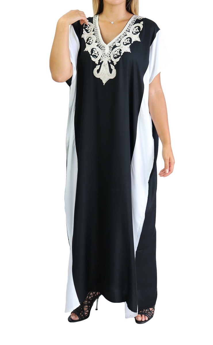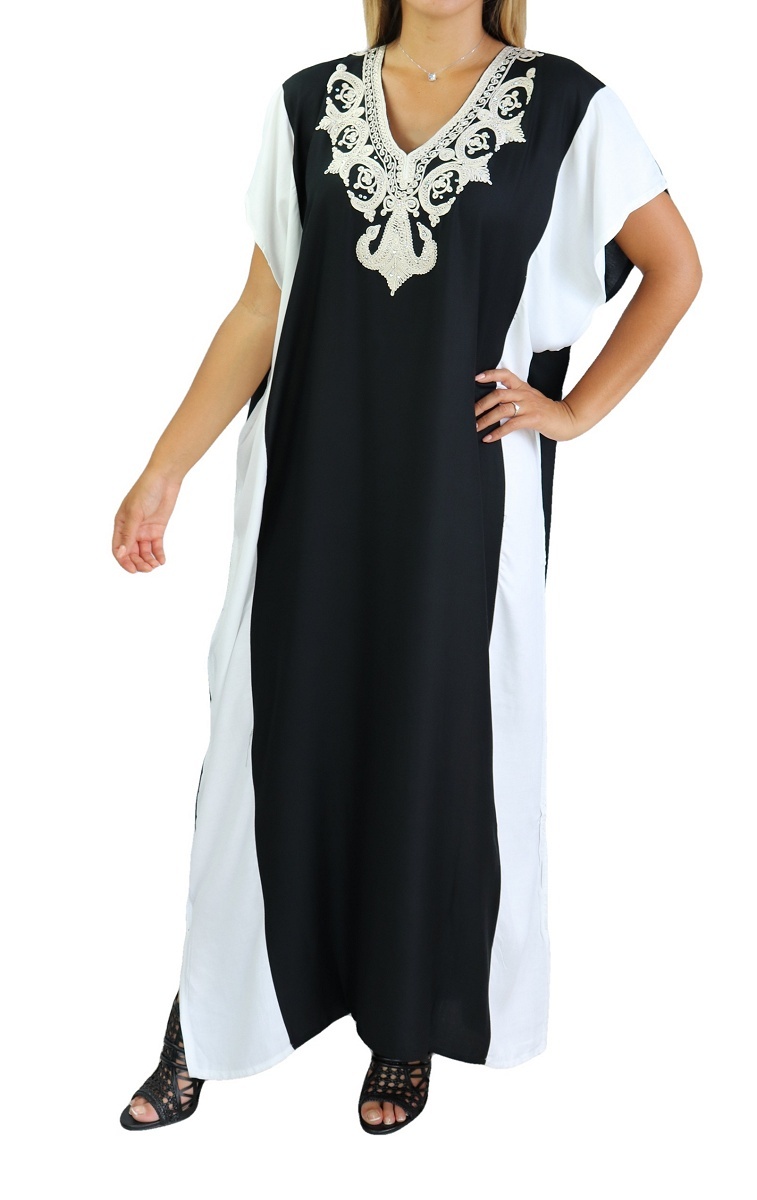 Robe orientale longue pas cher à manches courte avec broderies pour femme - Couleur noir - REF. 36095 (18.00 €)