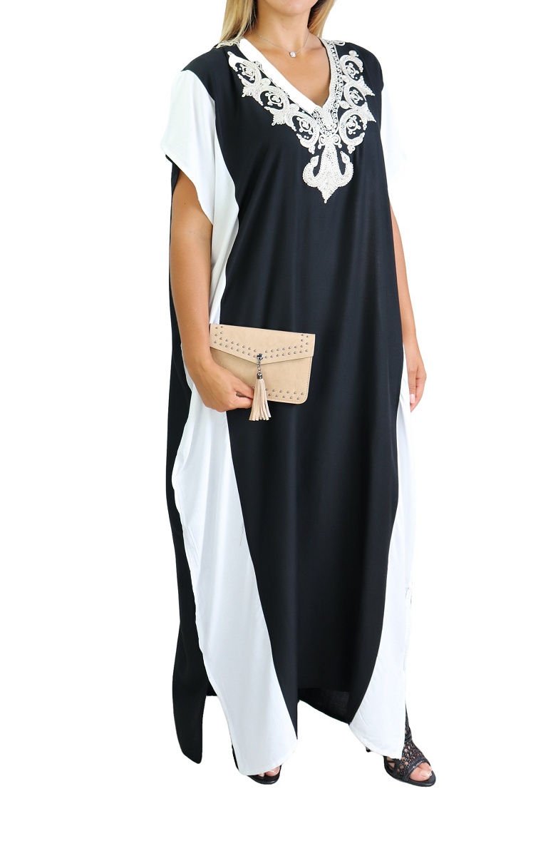 Robe marocaine très longue et large bi-couleur avec broderies - Plusieurs couleurs disponibles Vetement & Accessoire