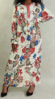 Robe orientale de maison fluide (gandoura) manches longues fleurie pour femme - Couleur Rouge et Bleu - REF. 33429 (19.90 €)