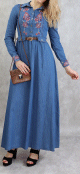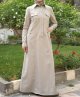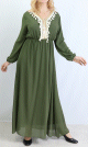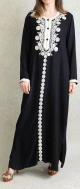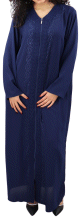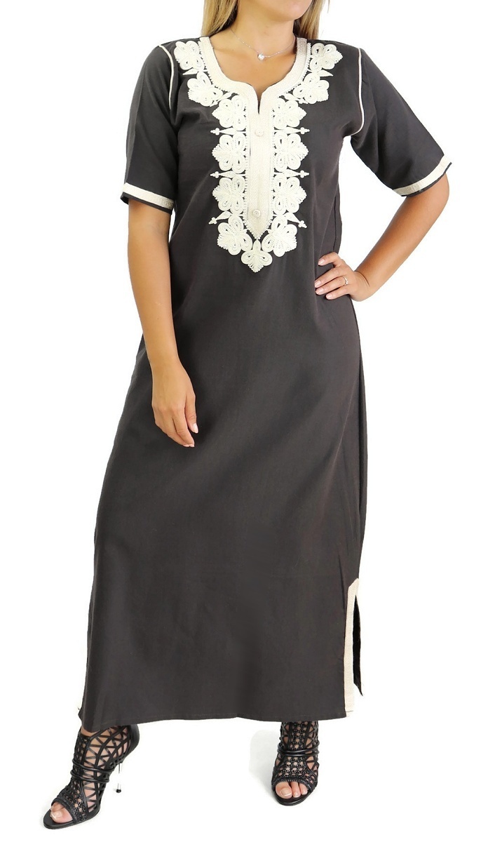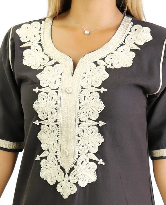 Cette Gandoura aux réalisée dans un tissu épais manches coutres est brodée de motifs orientaux beige sur la poitrine. L'élégance orientale dans toute sa splendeur.
