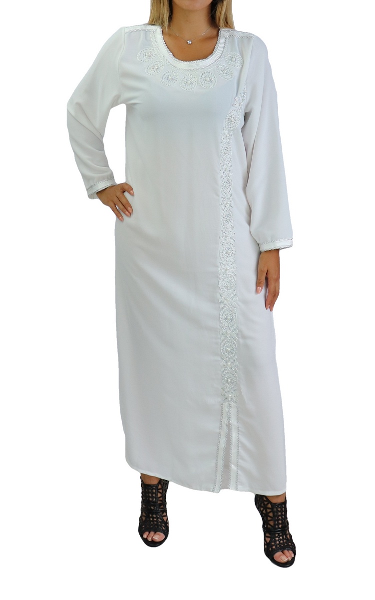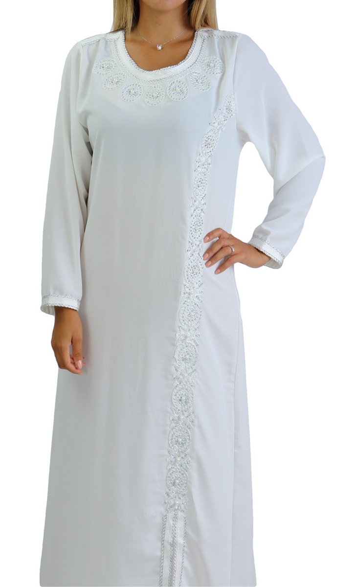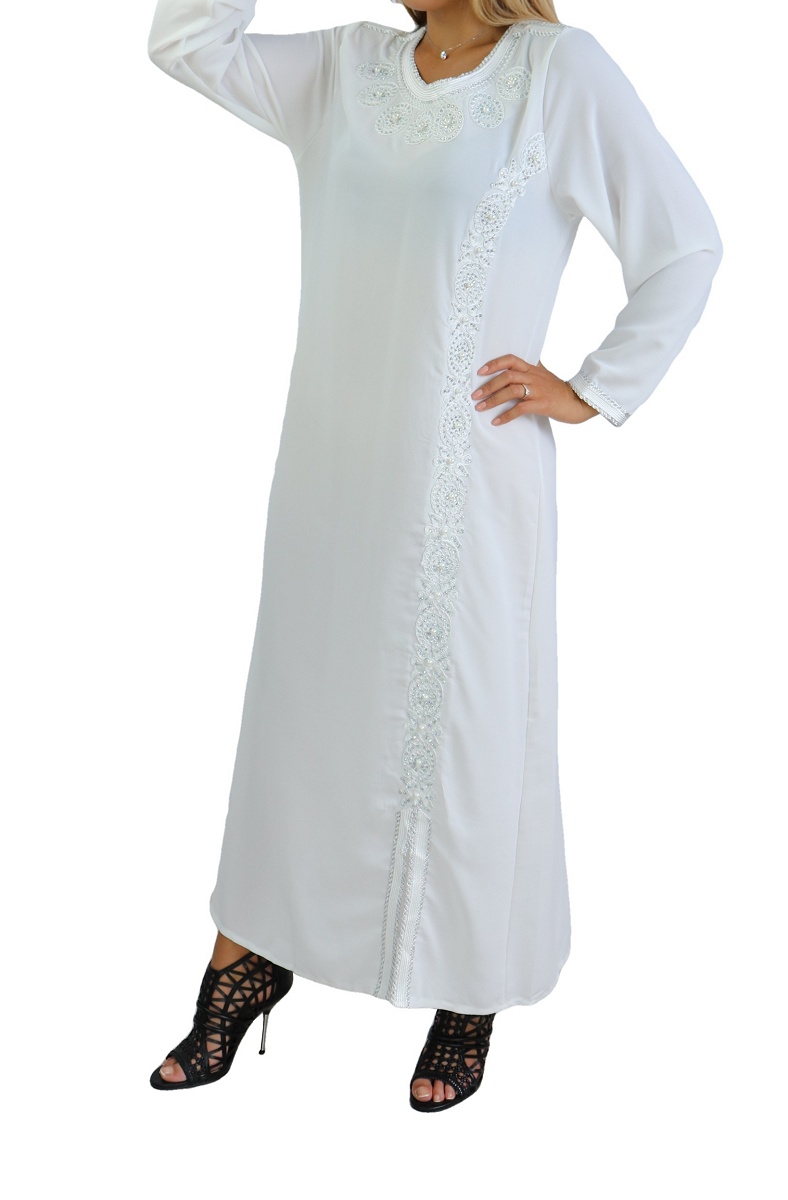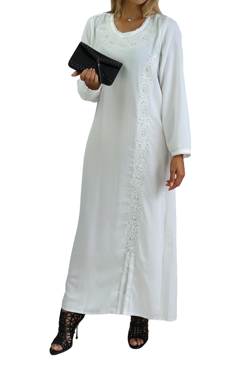 Robe orientale brodée et perlée pour femme - Couleur Blanc Vetement & Accessoire