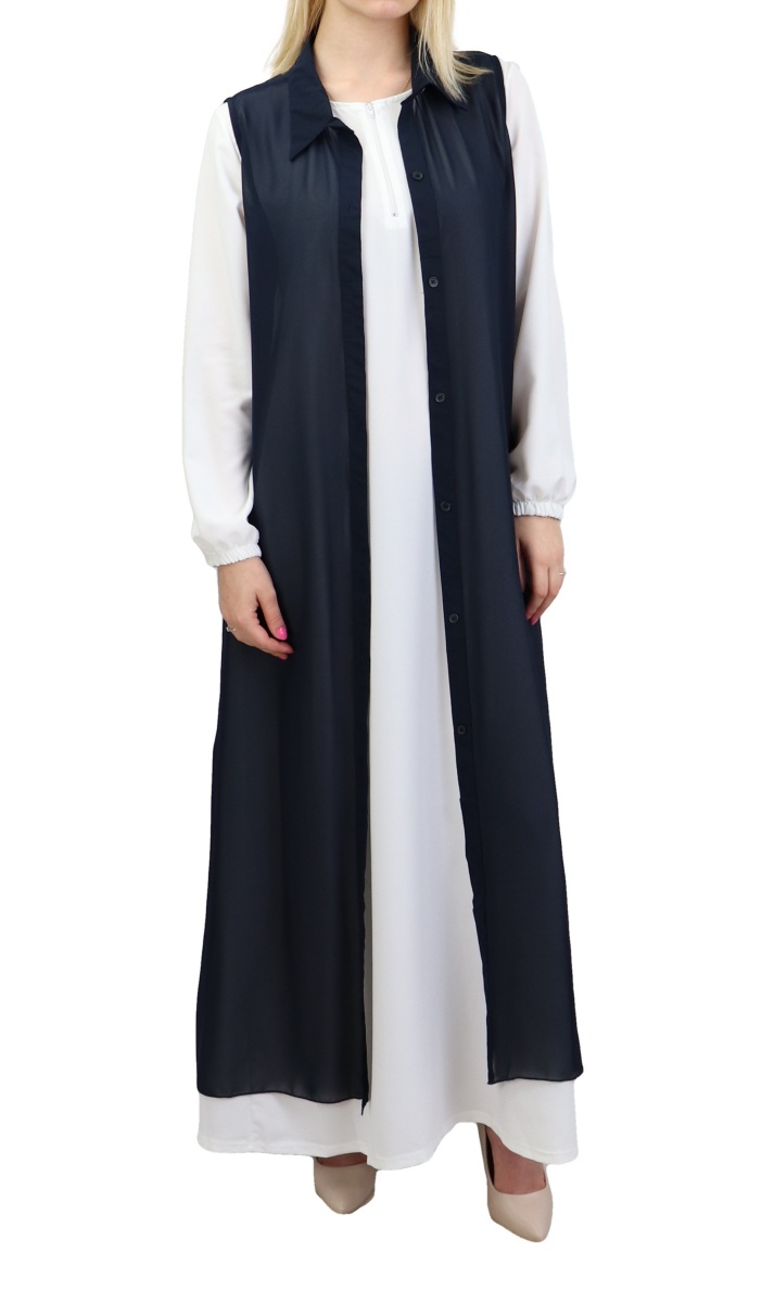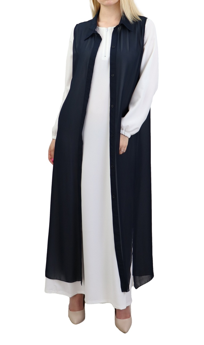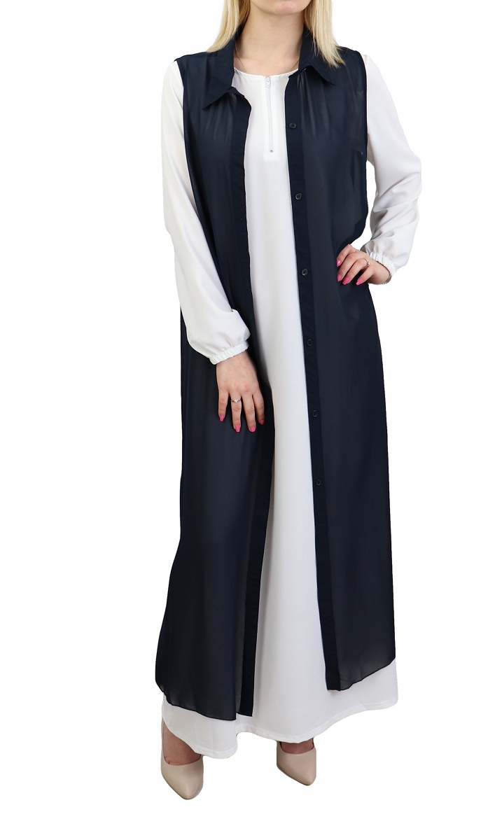 Cardigan Gilet long sans manches style oriental (Vetement pour femme musulmane moderne - Grande Taille) - REF. 32554 (19.90 €)