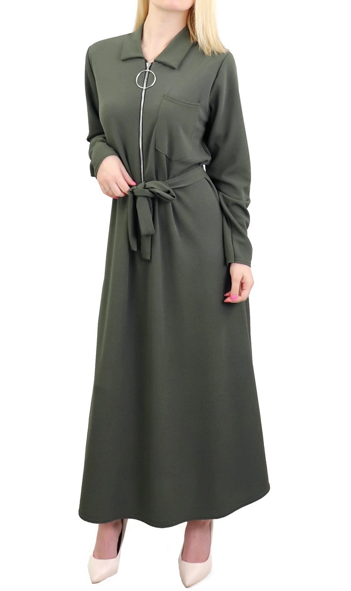 Robe longue fermeture zip avec ceinture pour femme (Taille standard s'adapte aux grandes tailles) - Vert Kaki Vetement & Accessoire