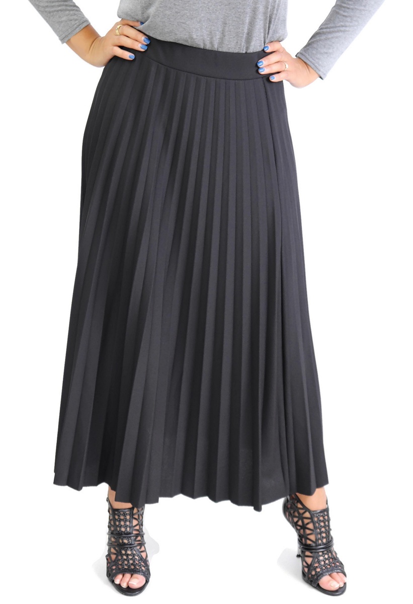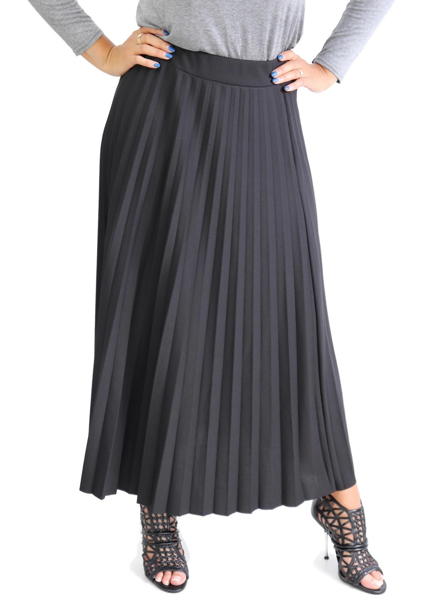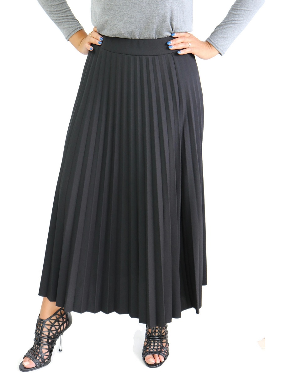Jupe longue, tissu plissé soleil pour composer un mouvement évasée, tendance, taille élastiquée. De couleur unie.