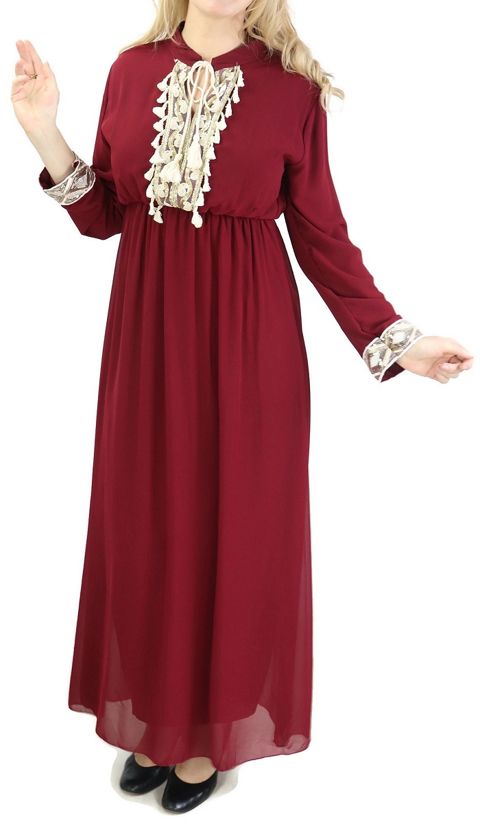 Robe longue pour femme avec broderies sur le devant et les manches - Couleur prune - REF. 37663 (29.00 €)
