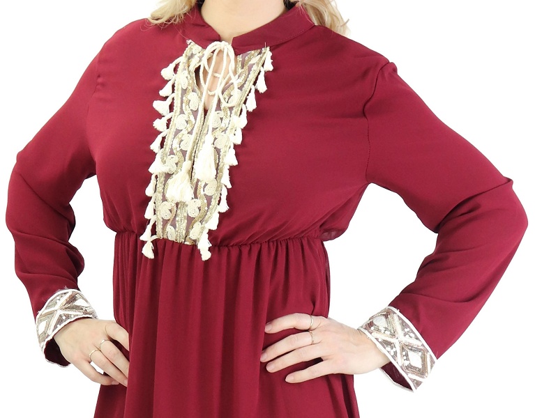 Robe fluide pour femme avec strass et pompons - Couleur Bordeaux Vetement & Accessoire