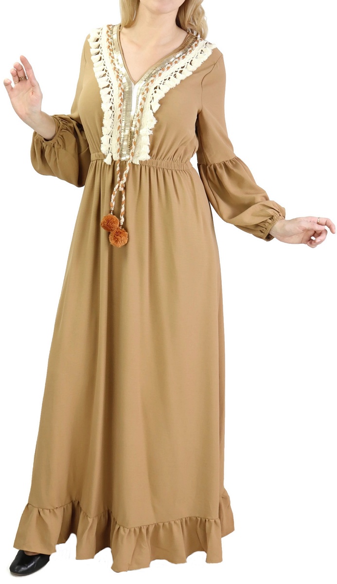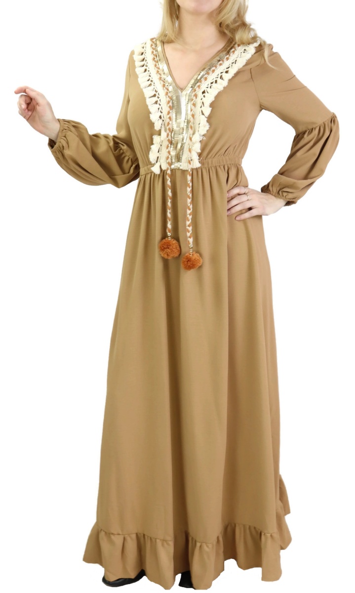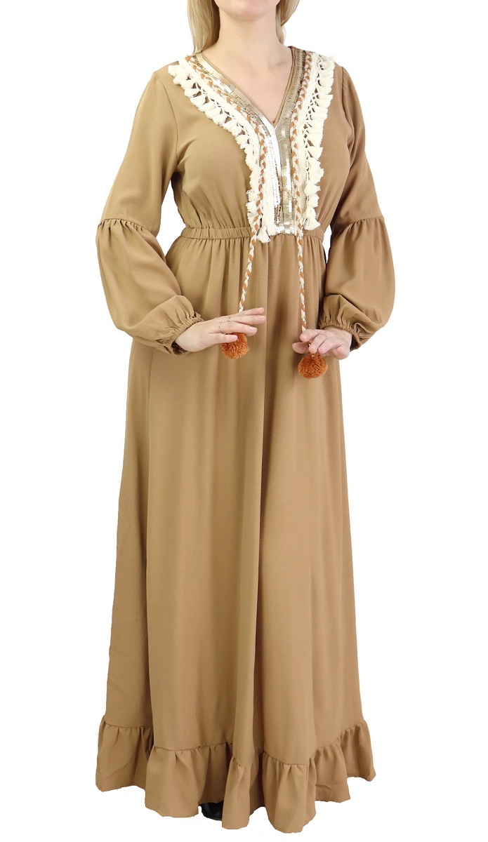 Robe de soirée "Chaima" marron avec broderies dorées - REF. 12529 (29.00 €)